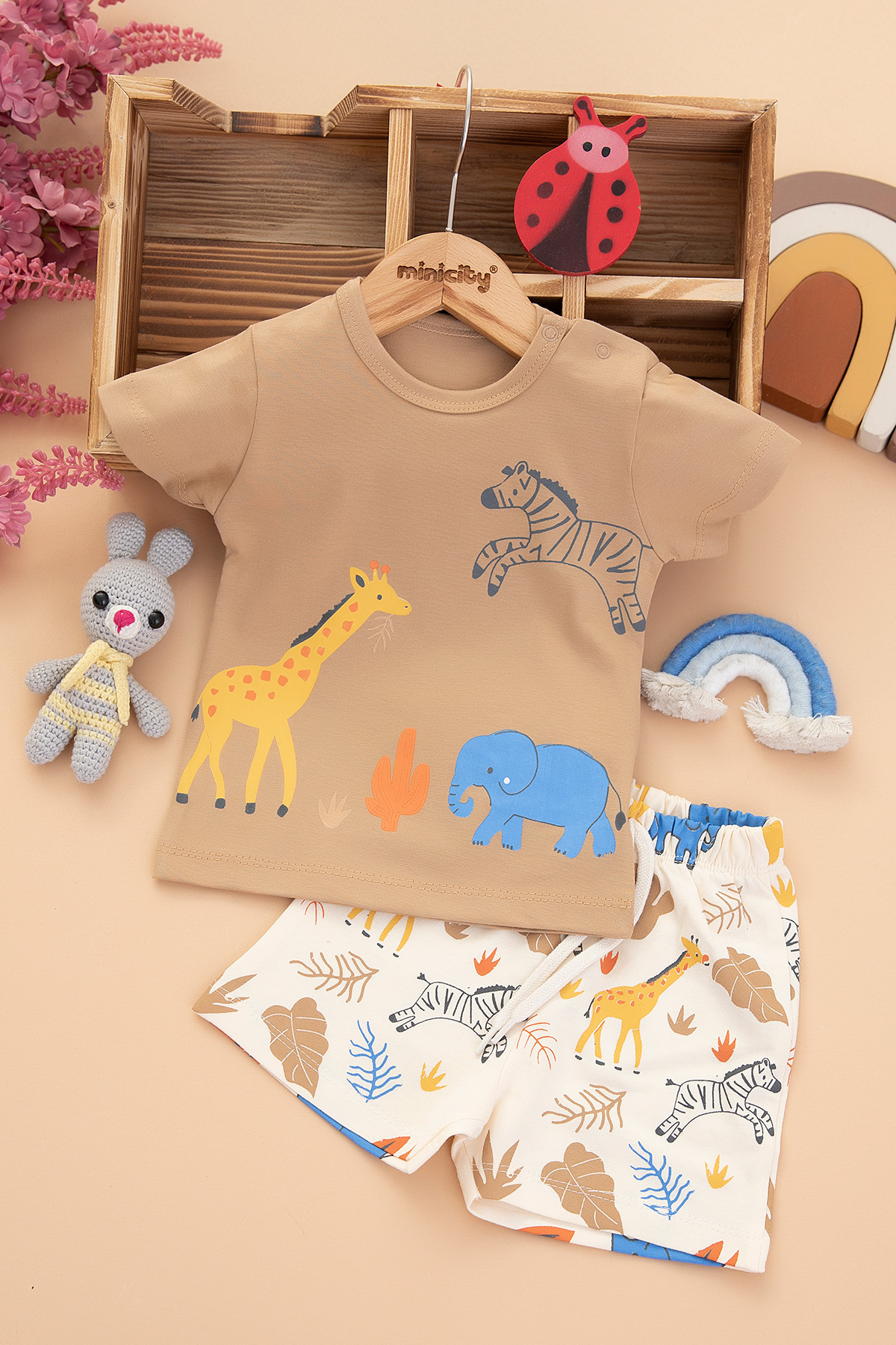 Erkek Bebek Hayvanlar Baskılı Şortlu Takım - 2511 (6-24 Ay)