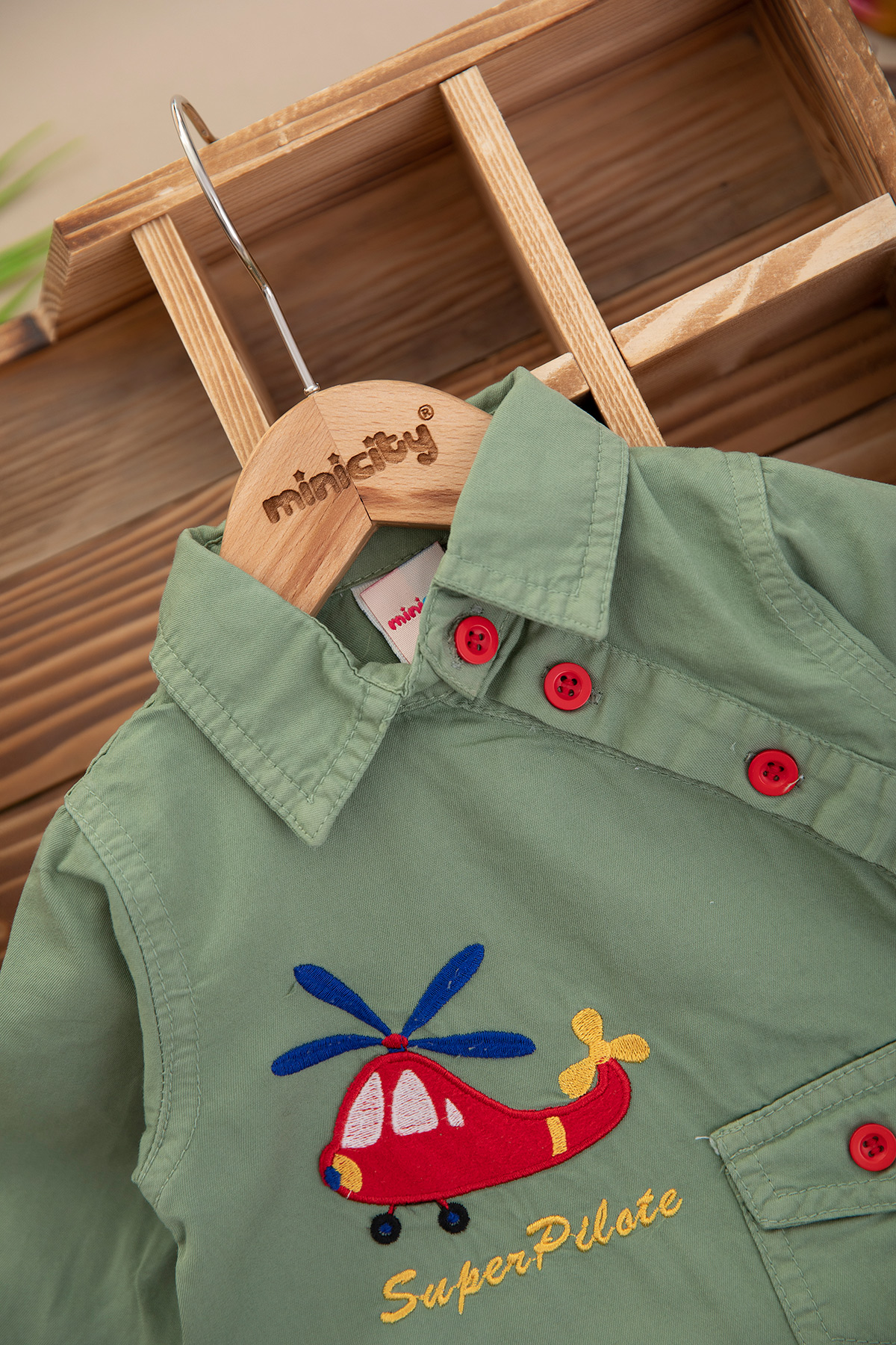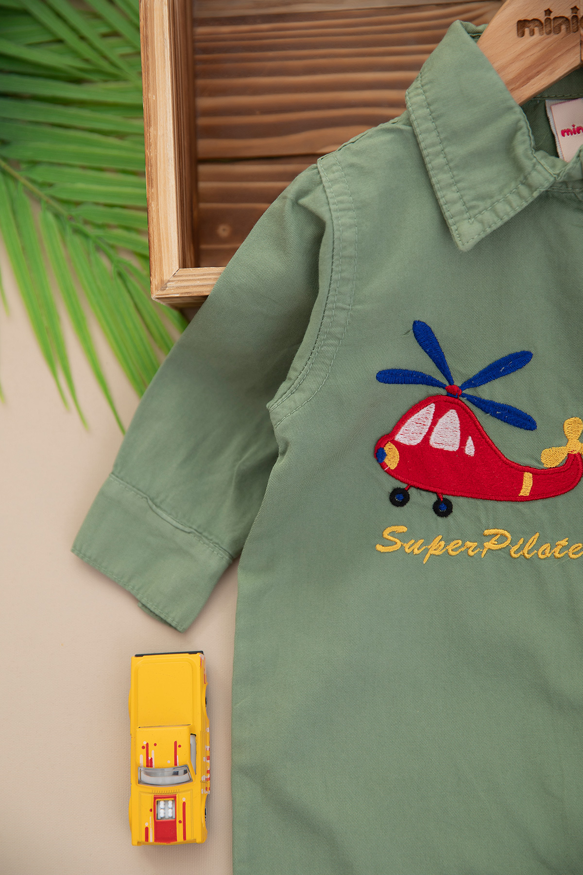 Erkek Bebek Helikopter Nakışlı Keten Tulum - 1153 (6-18 Ay)