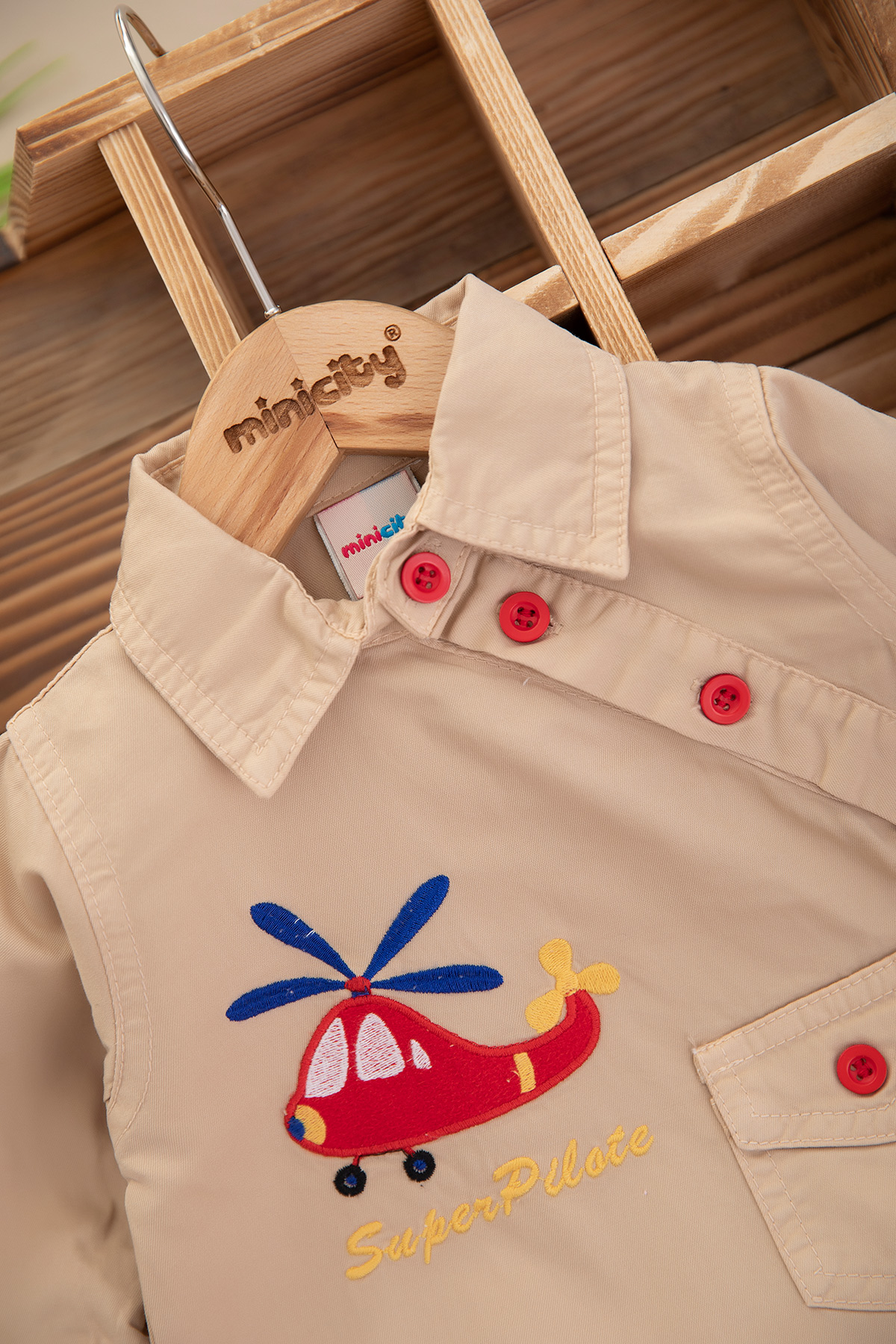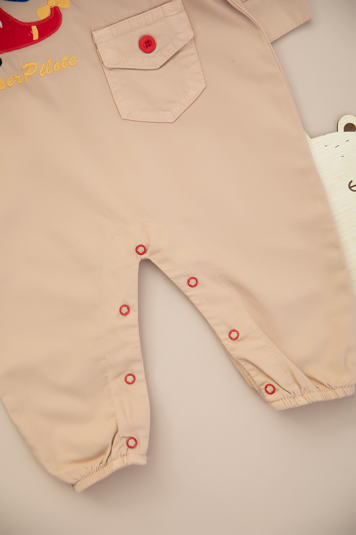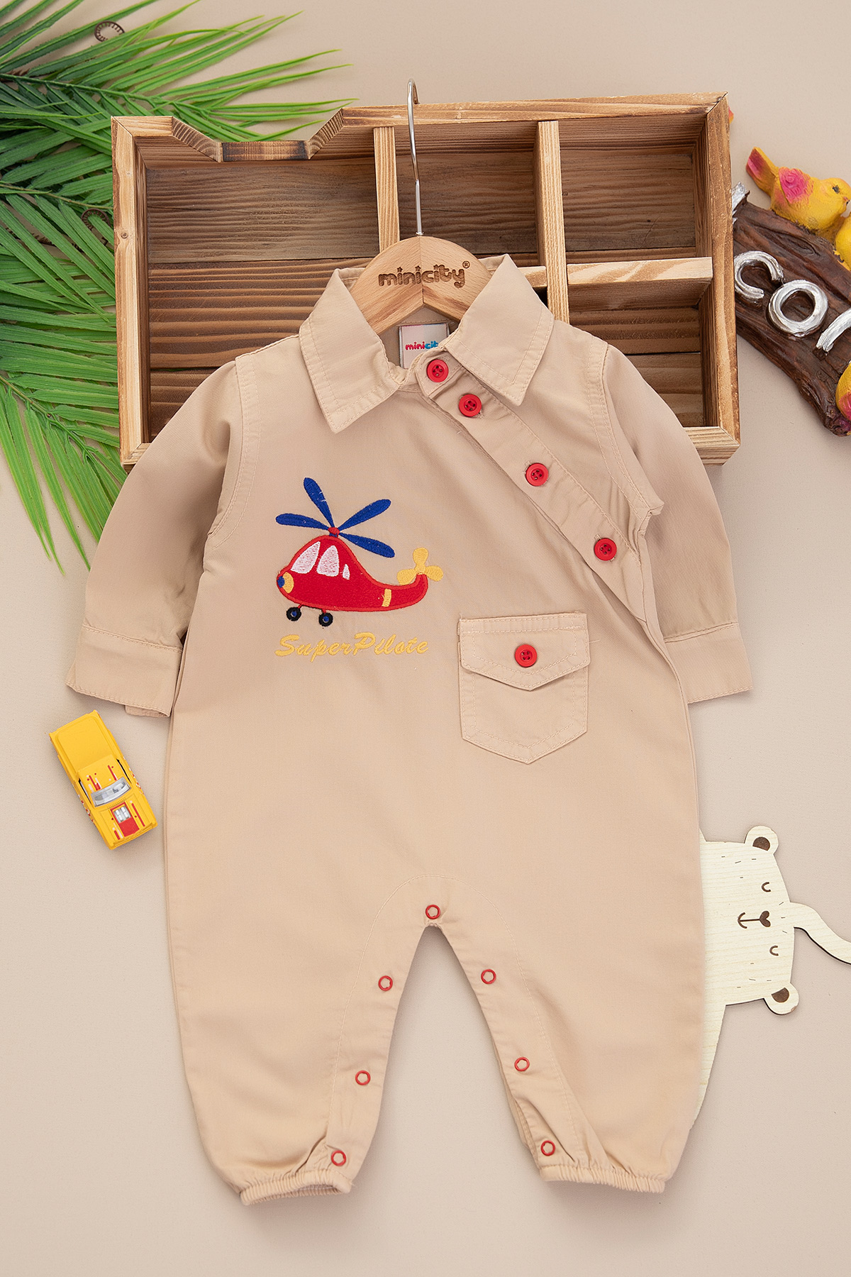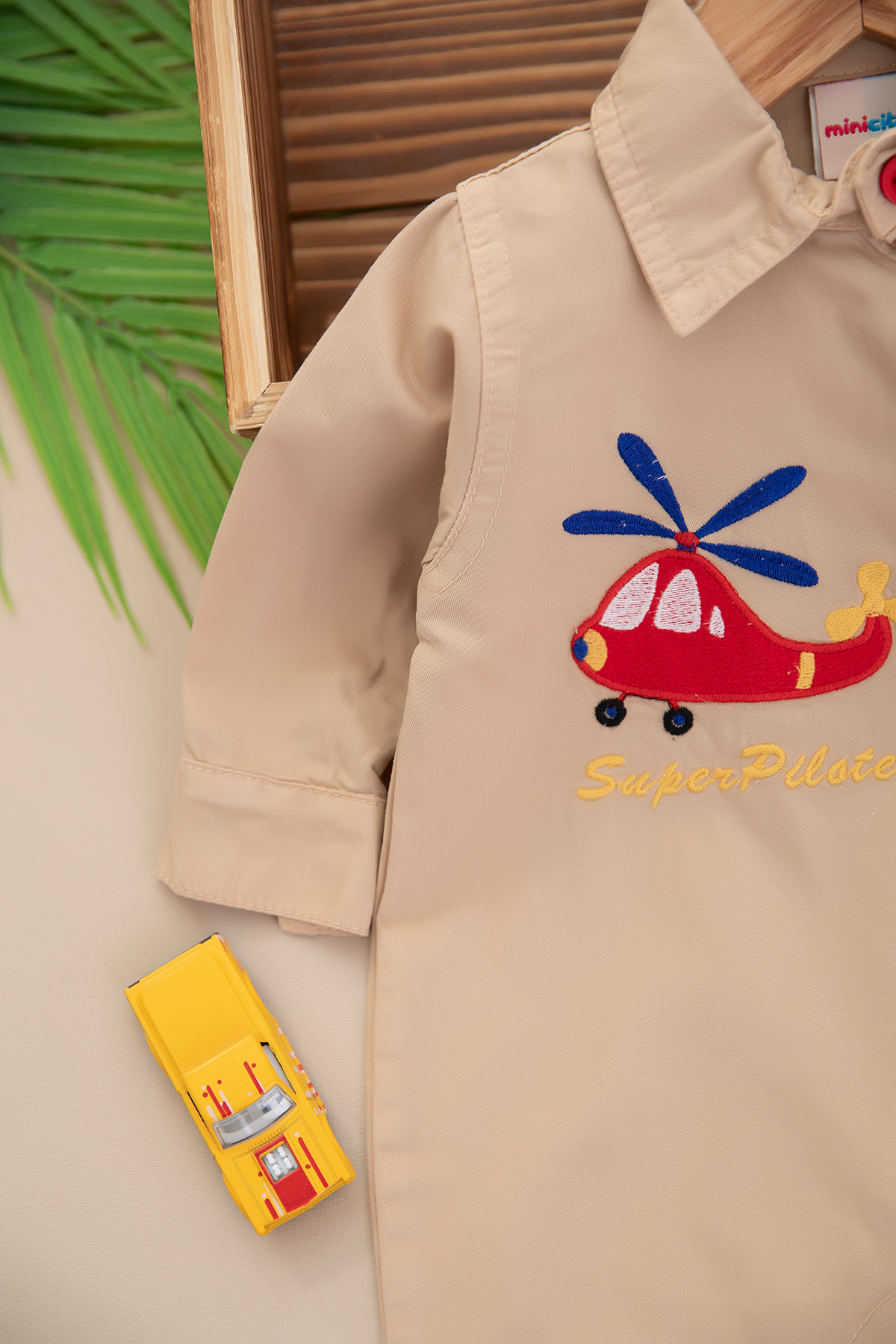Erkek Bebek Helikopter Nakışlı Keten Tulum - 1153 (6-18 Ay)