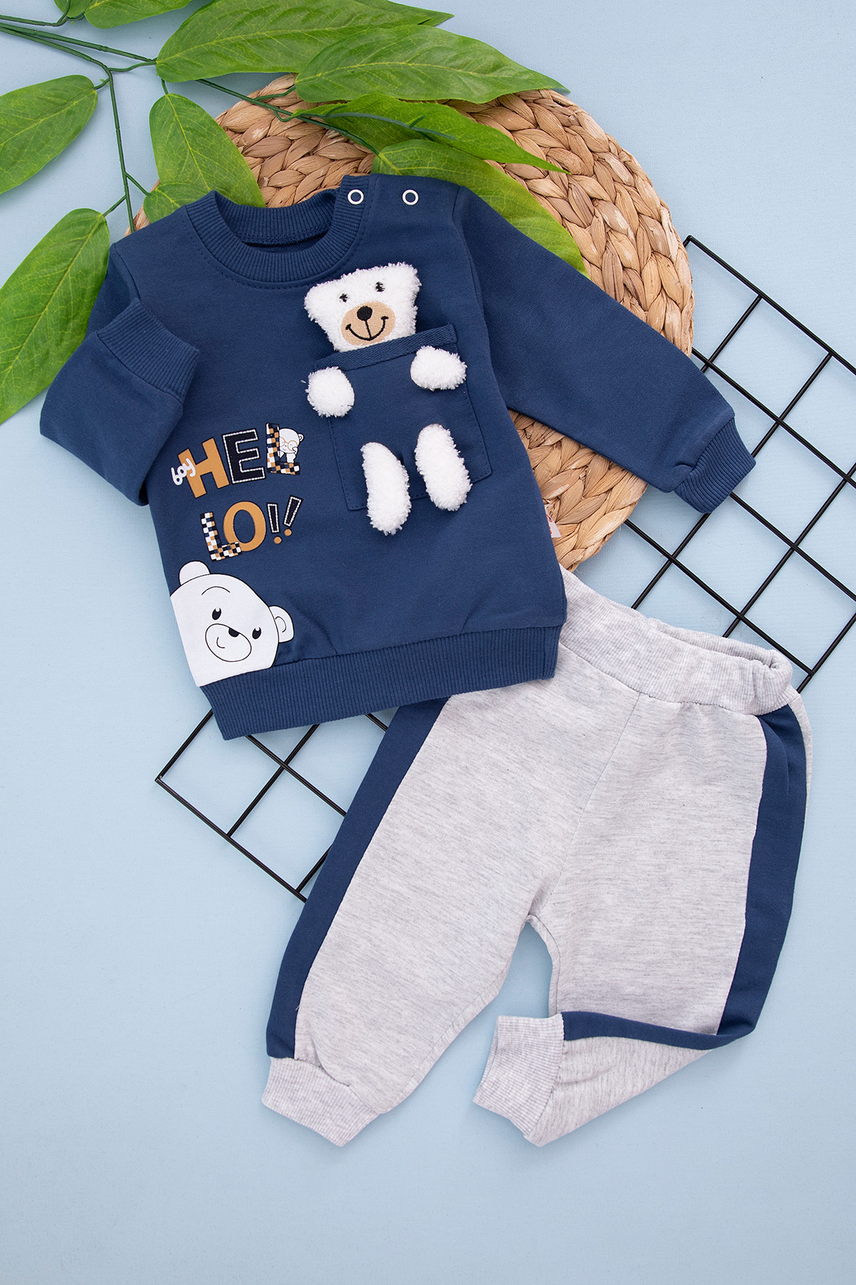 Erkek Bebek Hello Ayıcıklı Takım - (6-18 Ay)