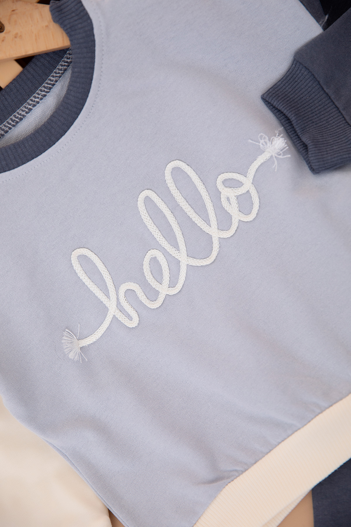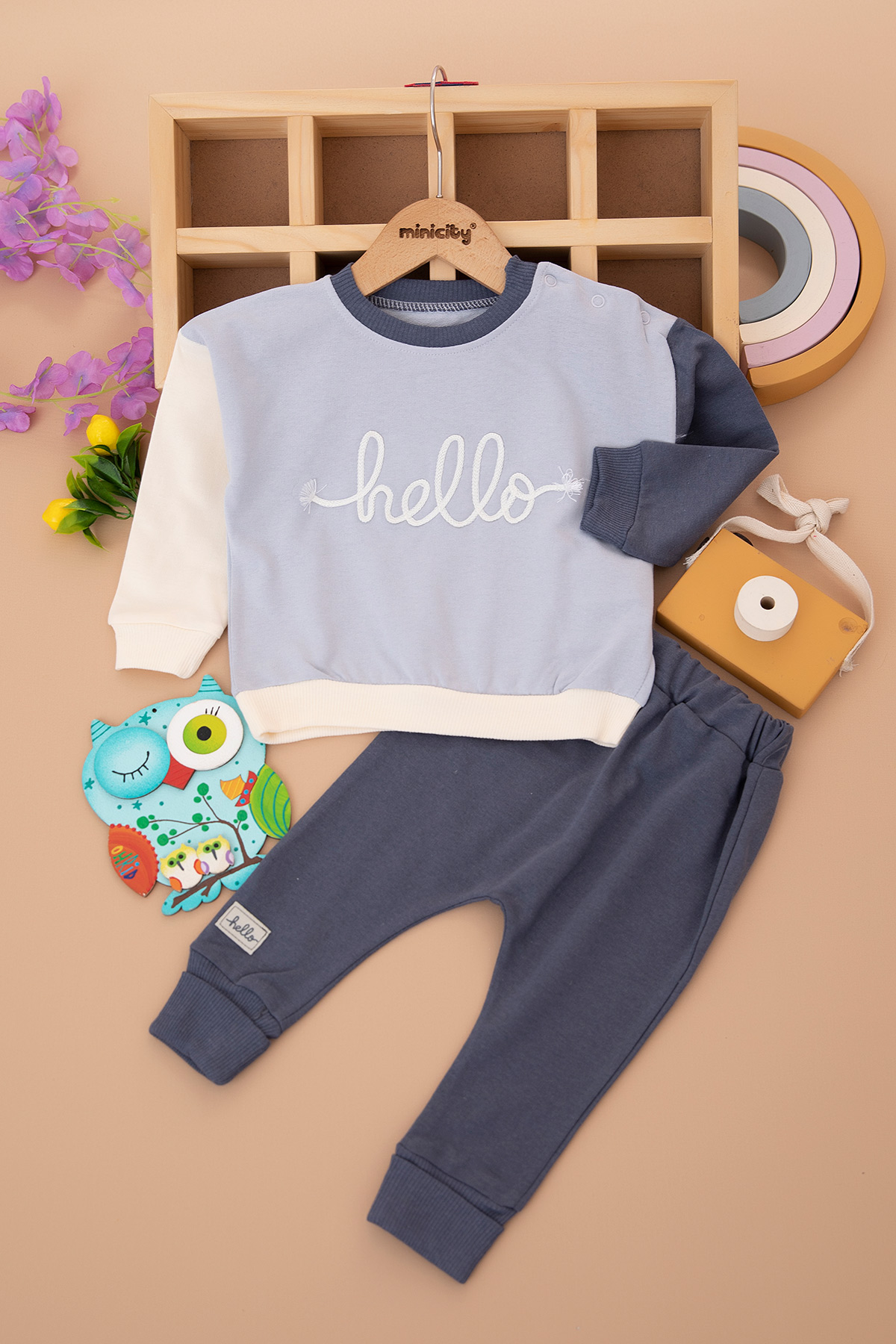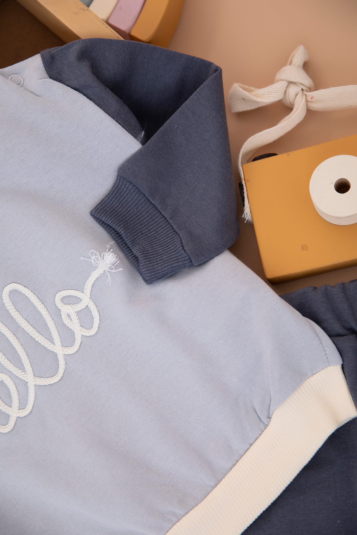 Erkek Bebek Hello Nakışlı Takım - 1120 (6-24 Ay)