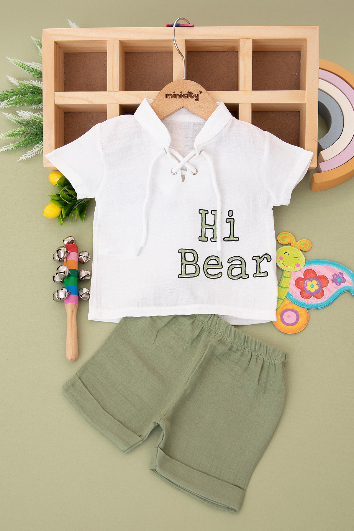 Erkek Bebek Hi Bear Baskılı Şortlu Takım - 24324 (9-24 Ay)