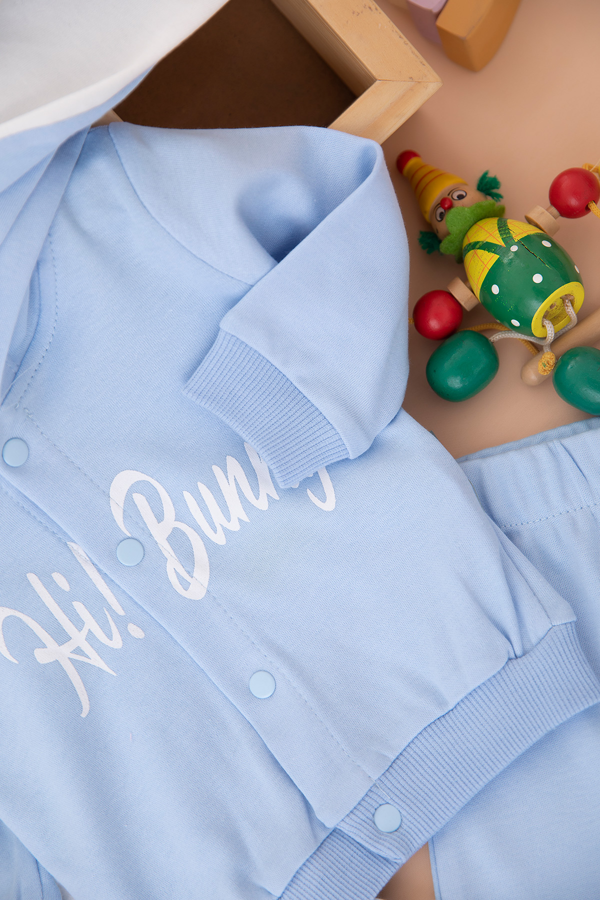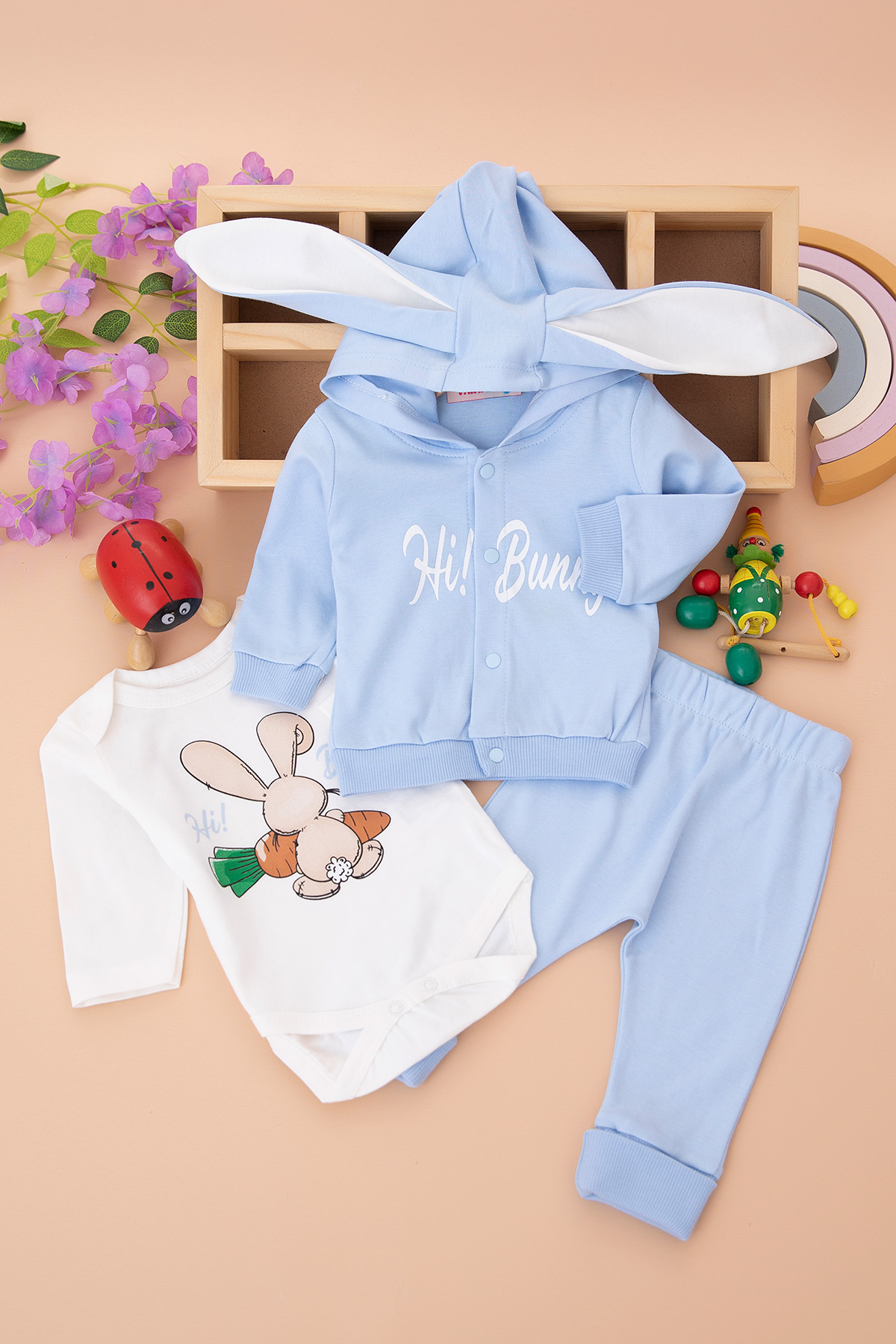 Erkek Bebek Hi Bunny Baskılı Hırka 3`Lü Takım - 14022 (0-12 Ay)