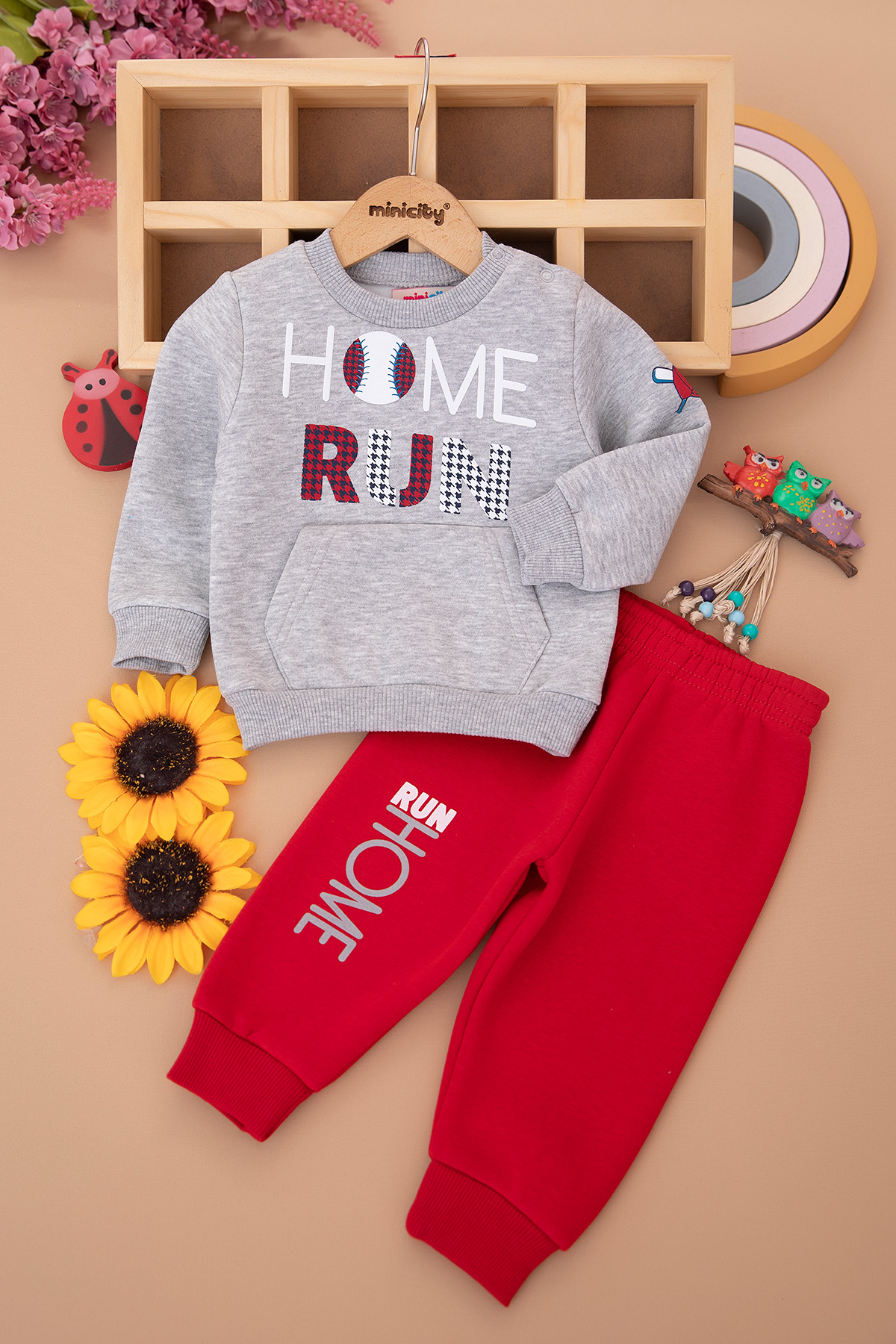 Erkek Bebek Home Run Baskılı Üç İP Takım - 24729 (9-24 Ay)