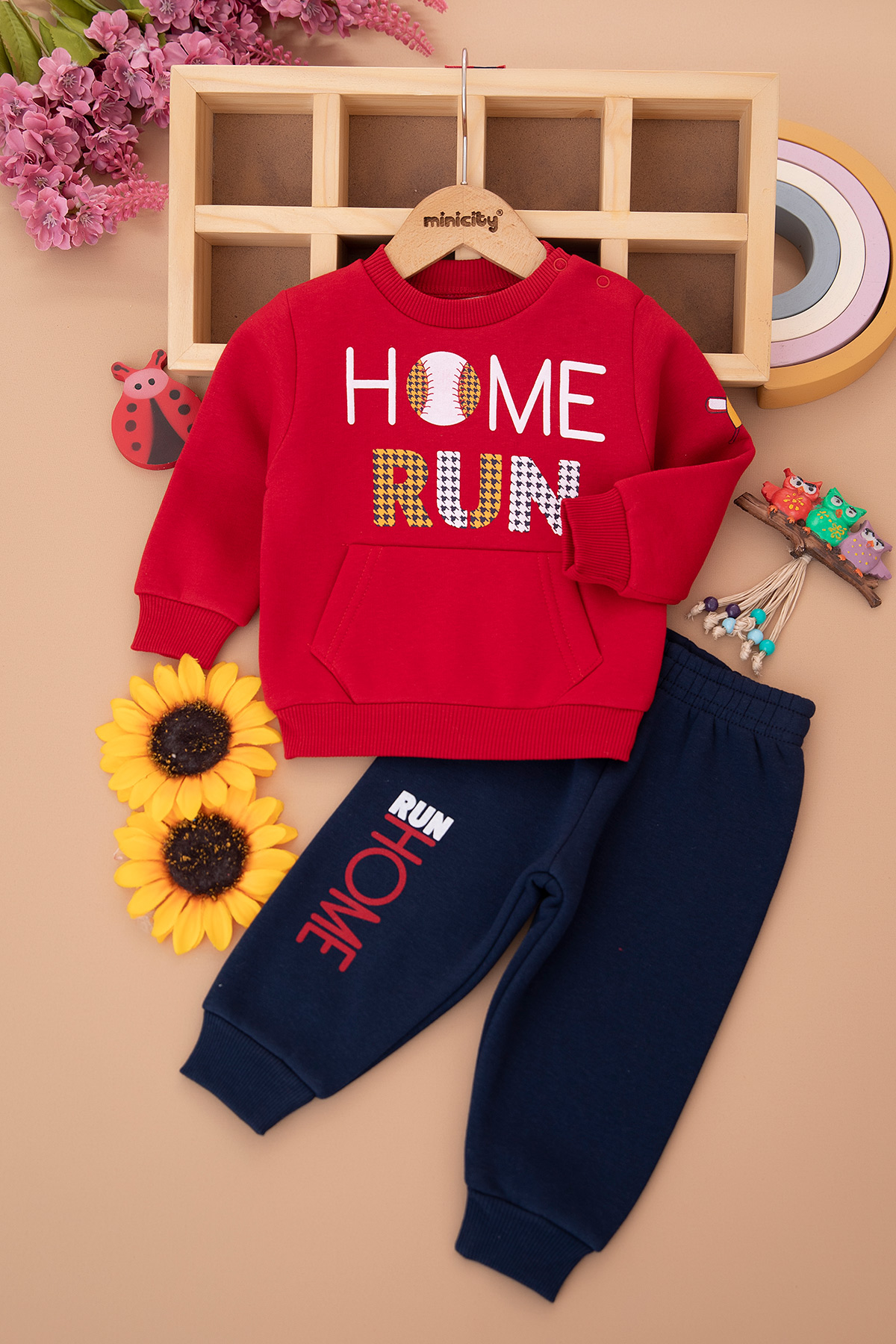 Erkek Bebek Home Run Baskılı Üç İP Takım - 24729 (9-24 Ay)
