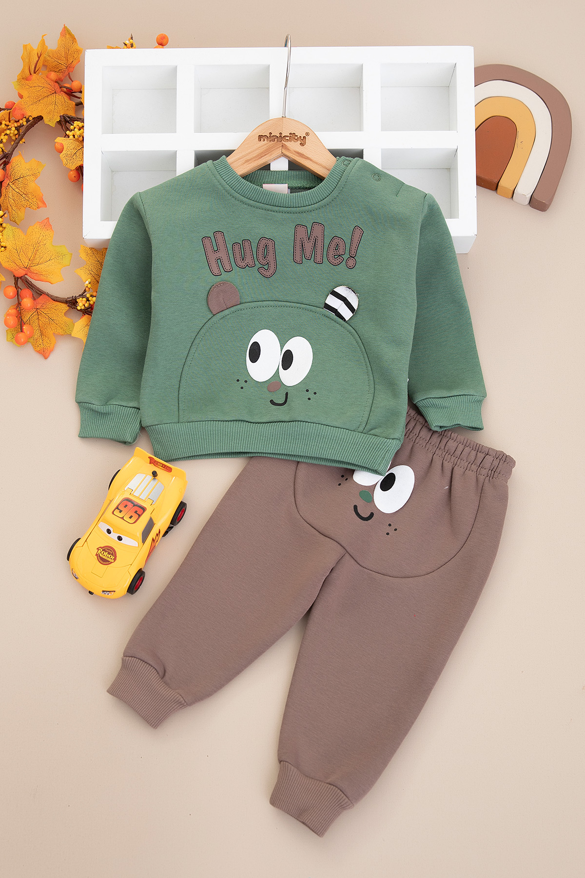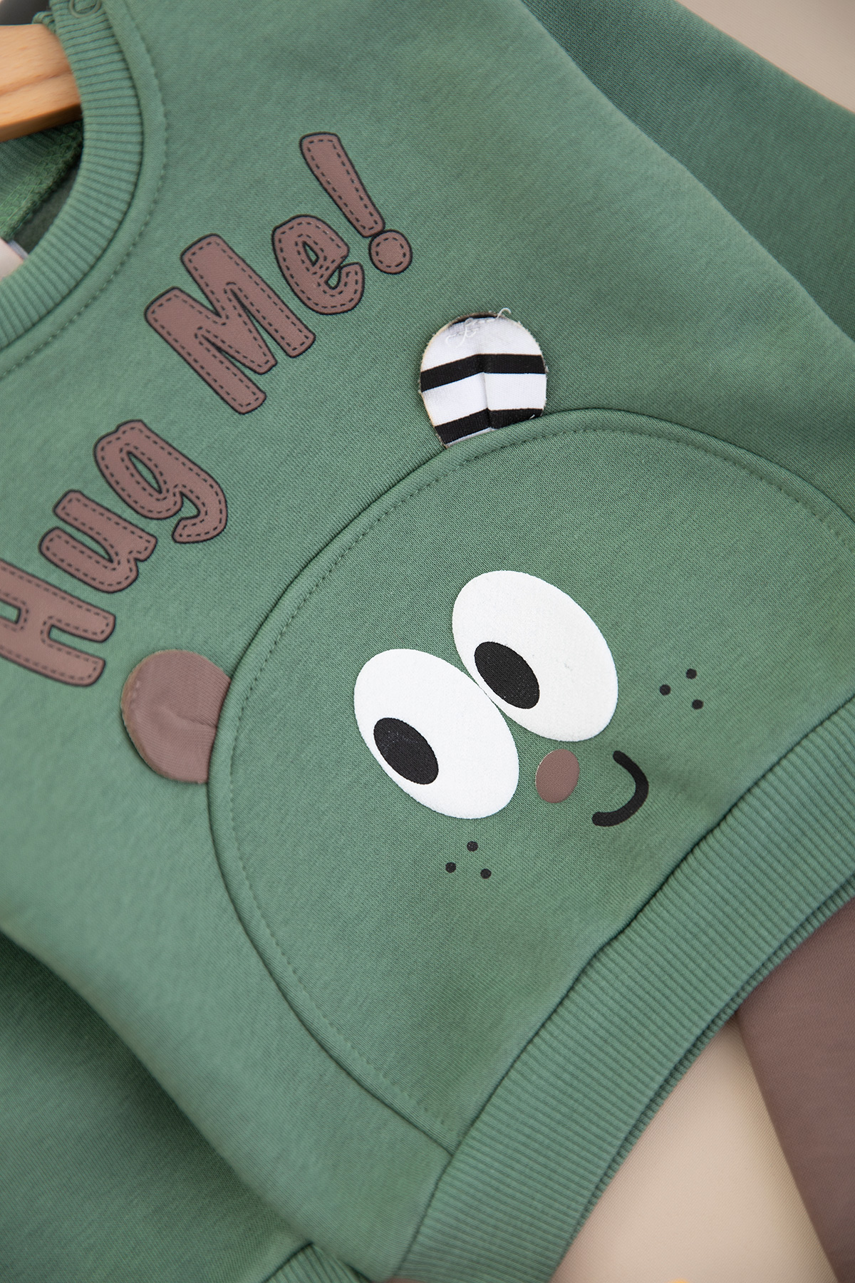 Erkek Bebek Hug Me! Baskılı Üçip Takım - 25826 (9-24 Ay)