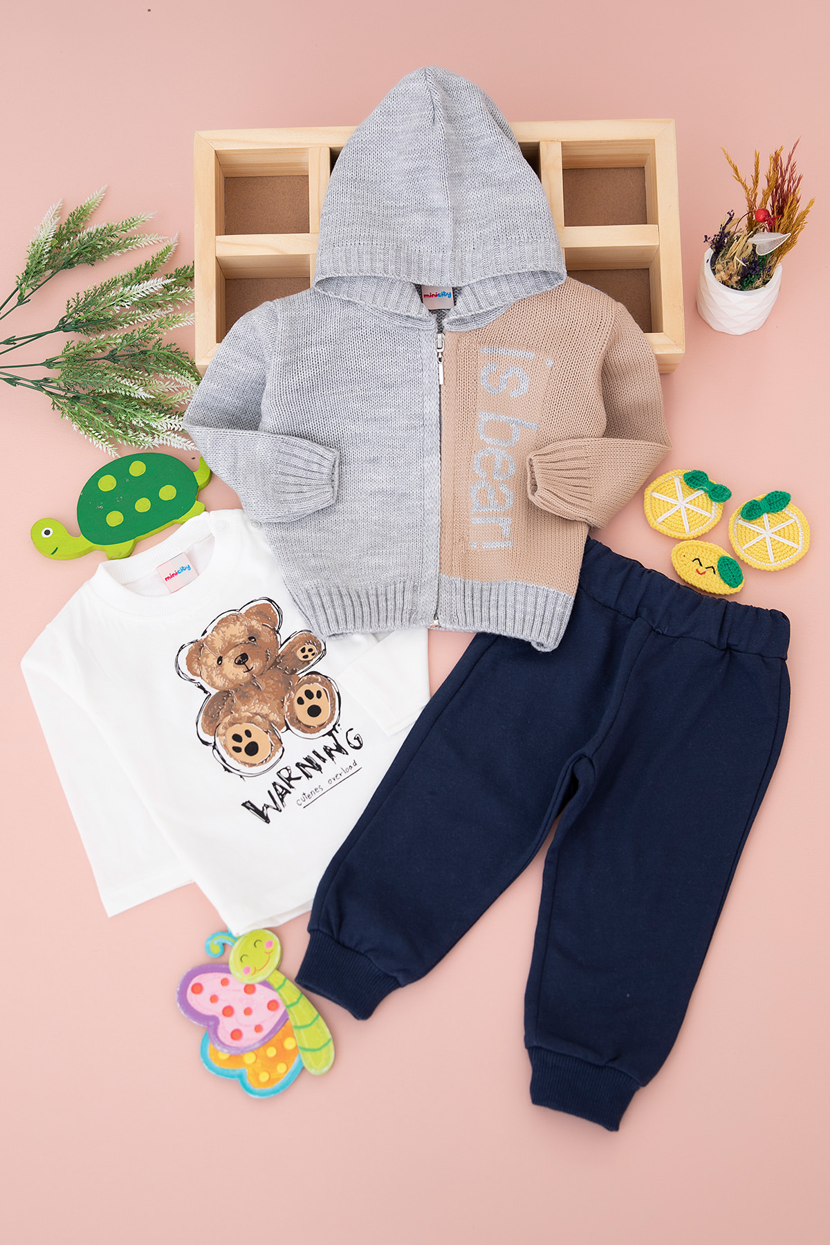 Erkek Bebek Is Bear Triko Üçlü Takım - 13780 (6-24 Ay)