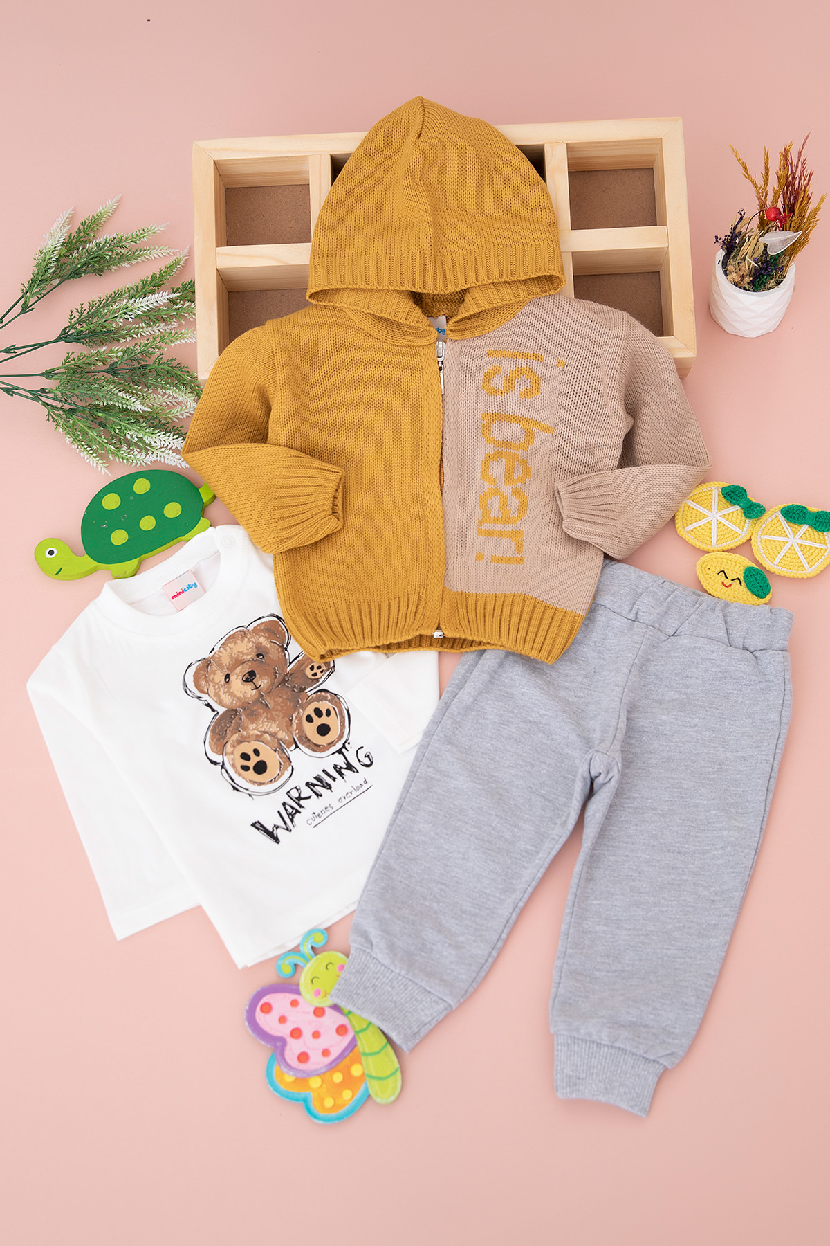 Erkek Bebek Is Bear Triko Üçlü Takım - 13780 (6-24 Ay)