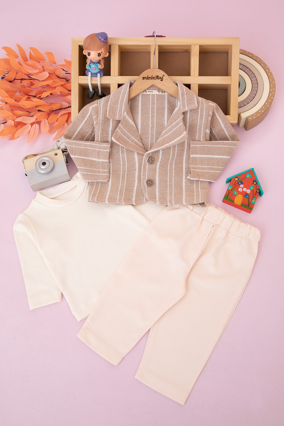 Erkek Bebek Jakarlı Ceketli Üçlü Takım - 1764 (9-24 Ay)