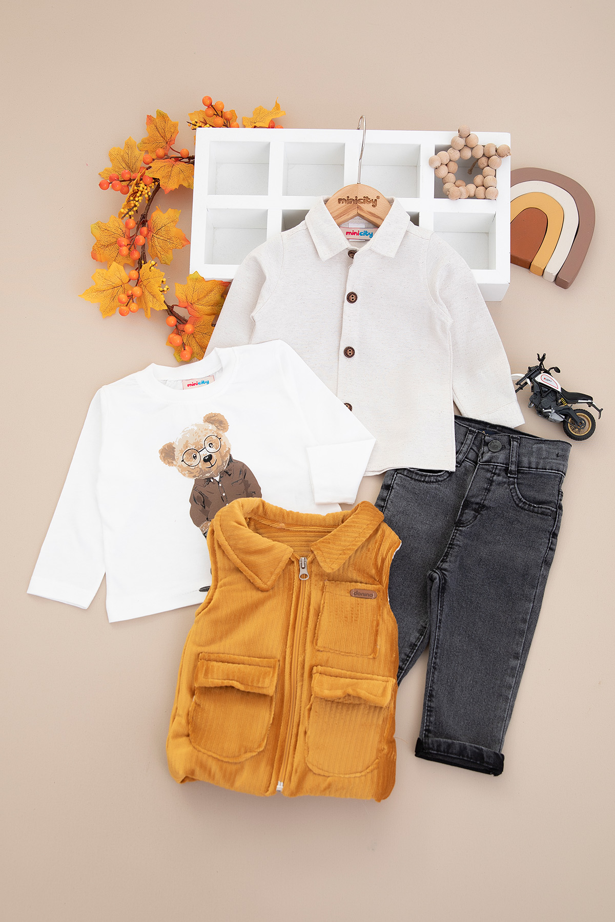 Erkek Bebek Kadife Armalı Yelekli Takım - 50680 (6-24 Ay)