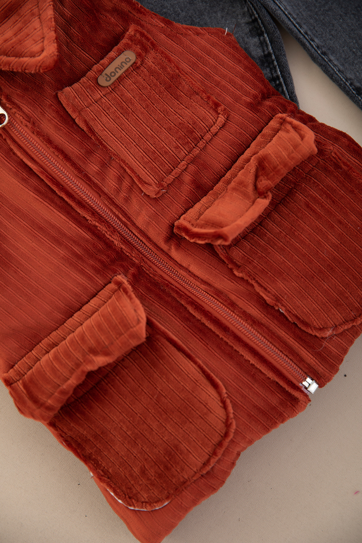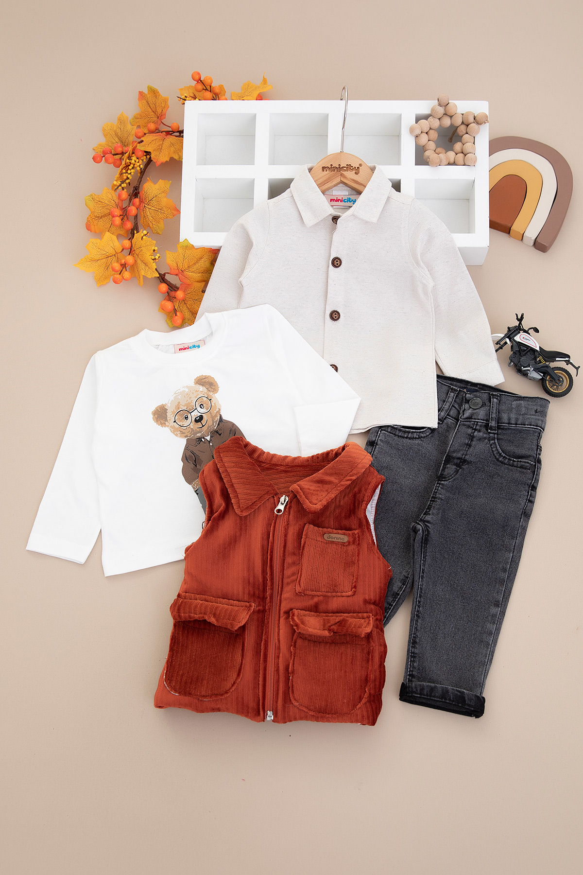 Erkek Bebek Kadife Armalı Yelekli Takım - 50680 (6-24 Ay)