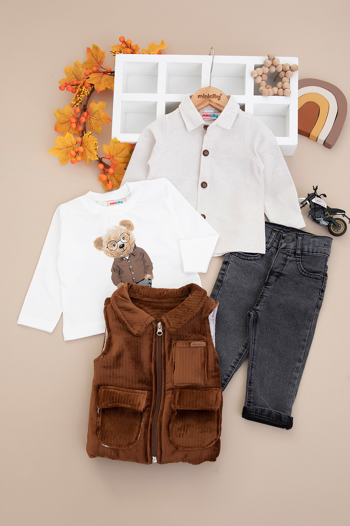 Erkek Bebek Kadife Armalı Yelekli Takım - 50680 (6-24 Ay)