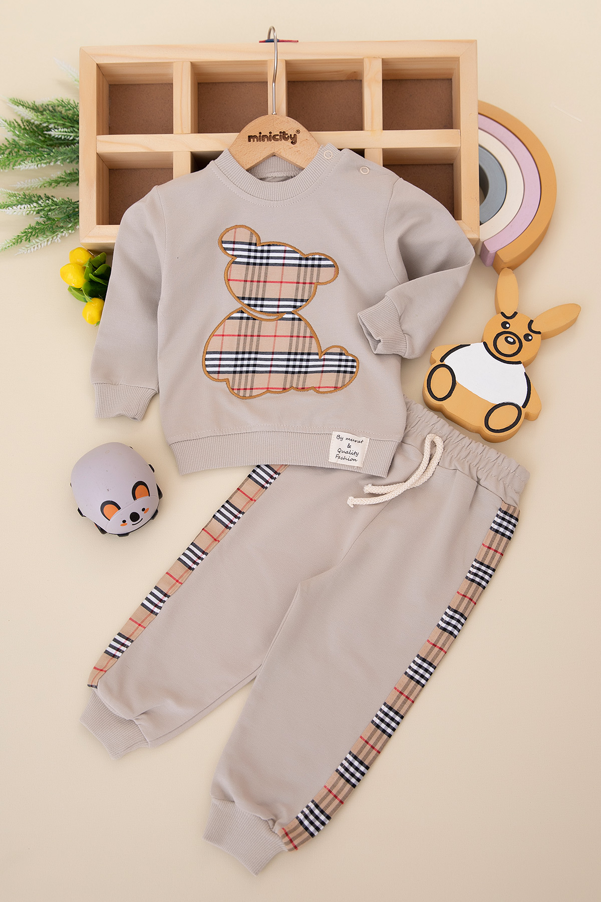 Erkek Bebek Kafa Yan Ayı Nakışlı Takım - 8602 (6-24 Ay)