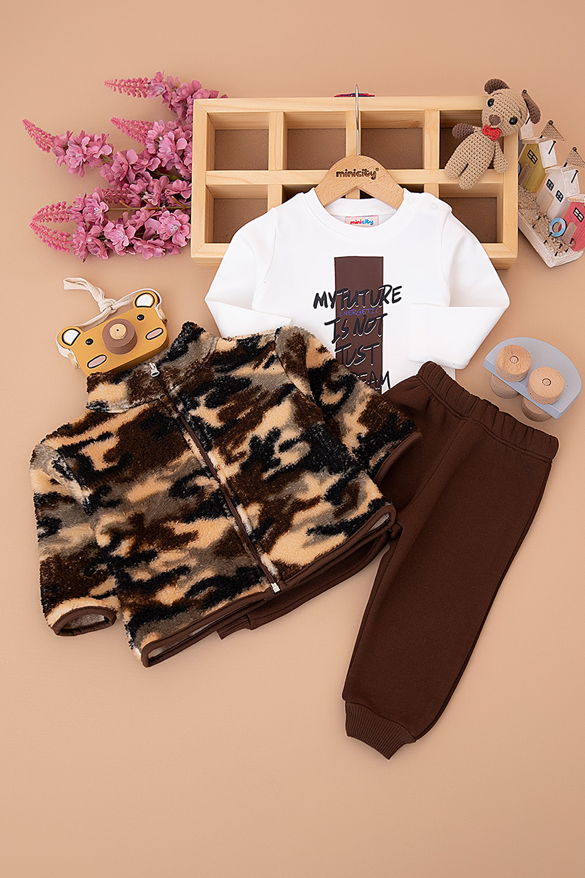 Erkek Bebek Kamuflaj Kuzu Üçlü Takım - 323 (9-24 Ay)