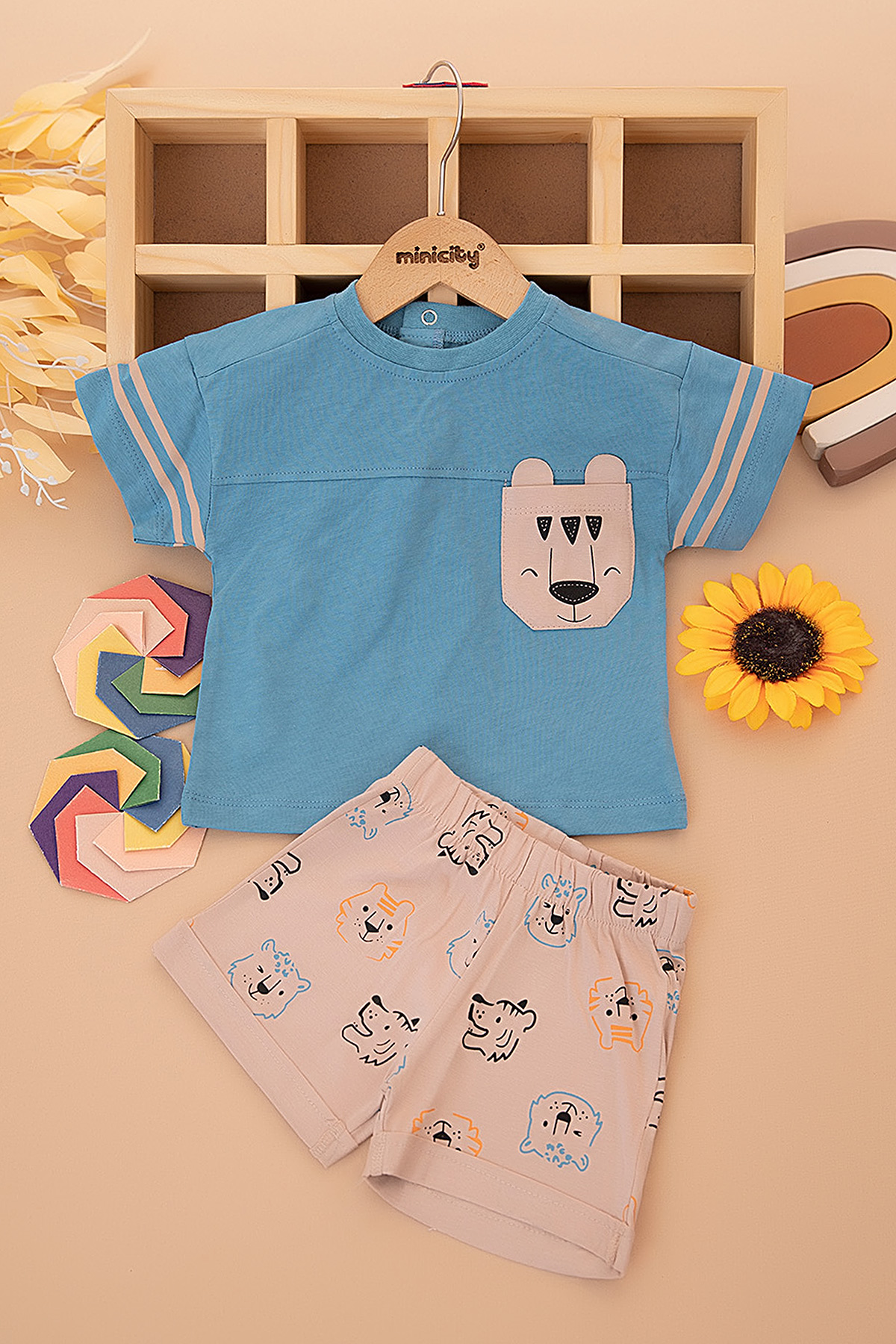 Erkek Bebek Kaplan Baskılı Şortlu Takım - 25394 (9-24 Ay)