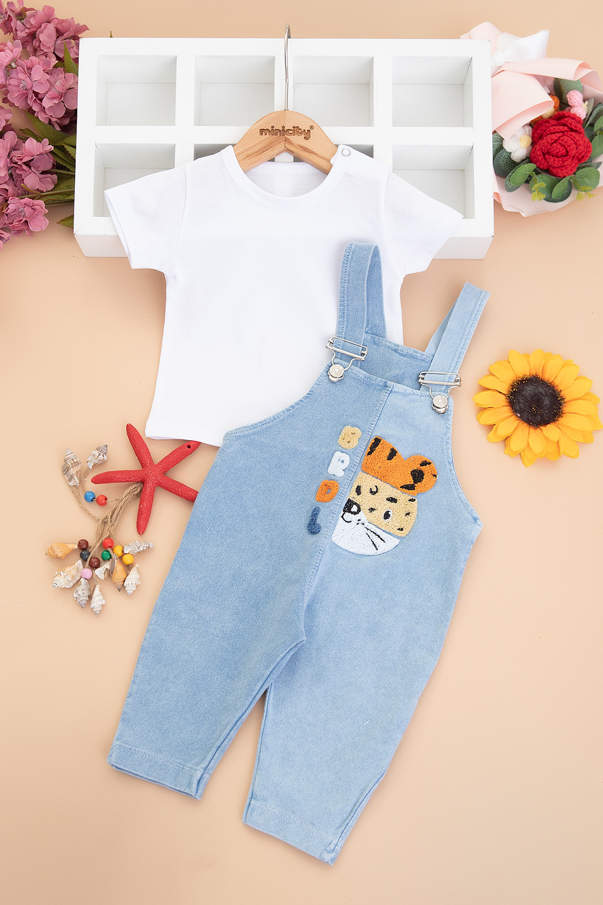 Erkek Bebek Kaplan Nakışlı Badili Salopet - 0358 (9-24 Ay)