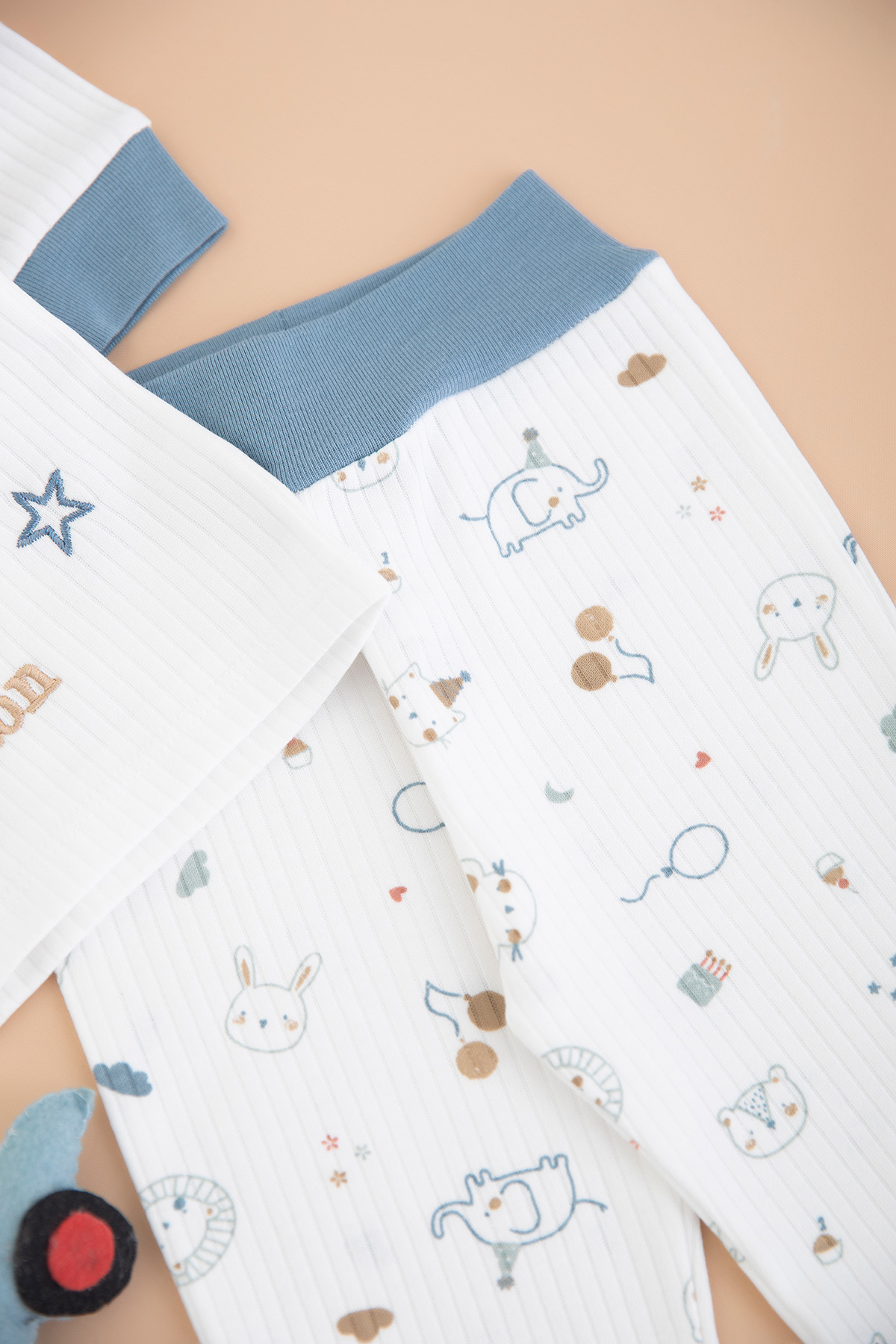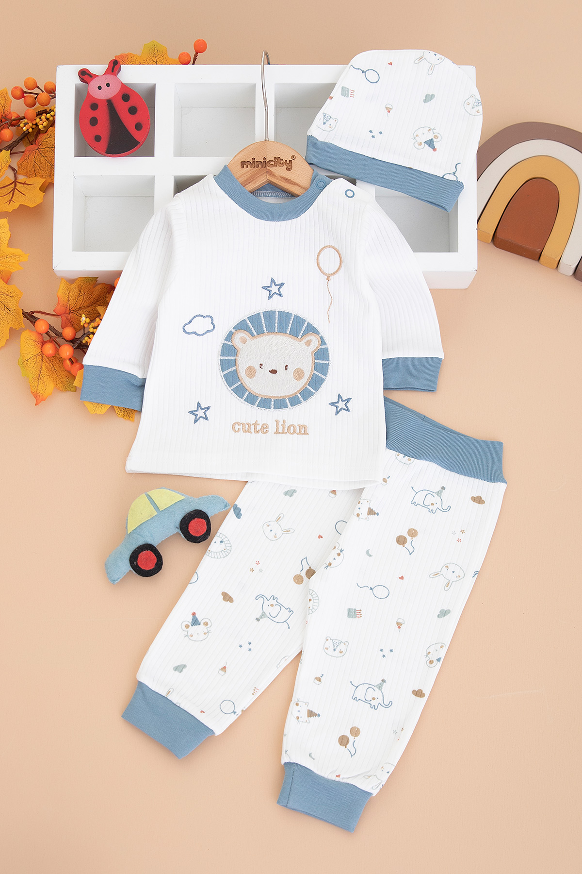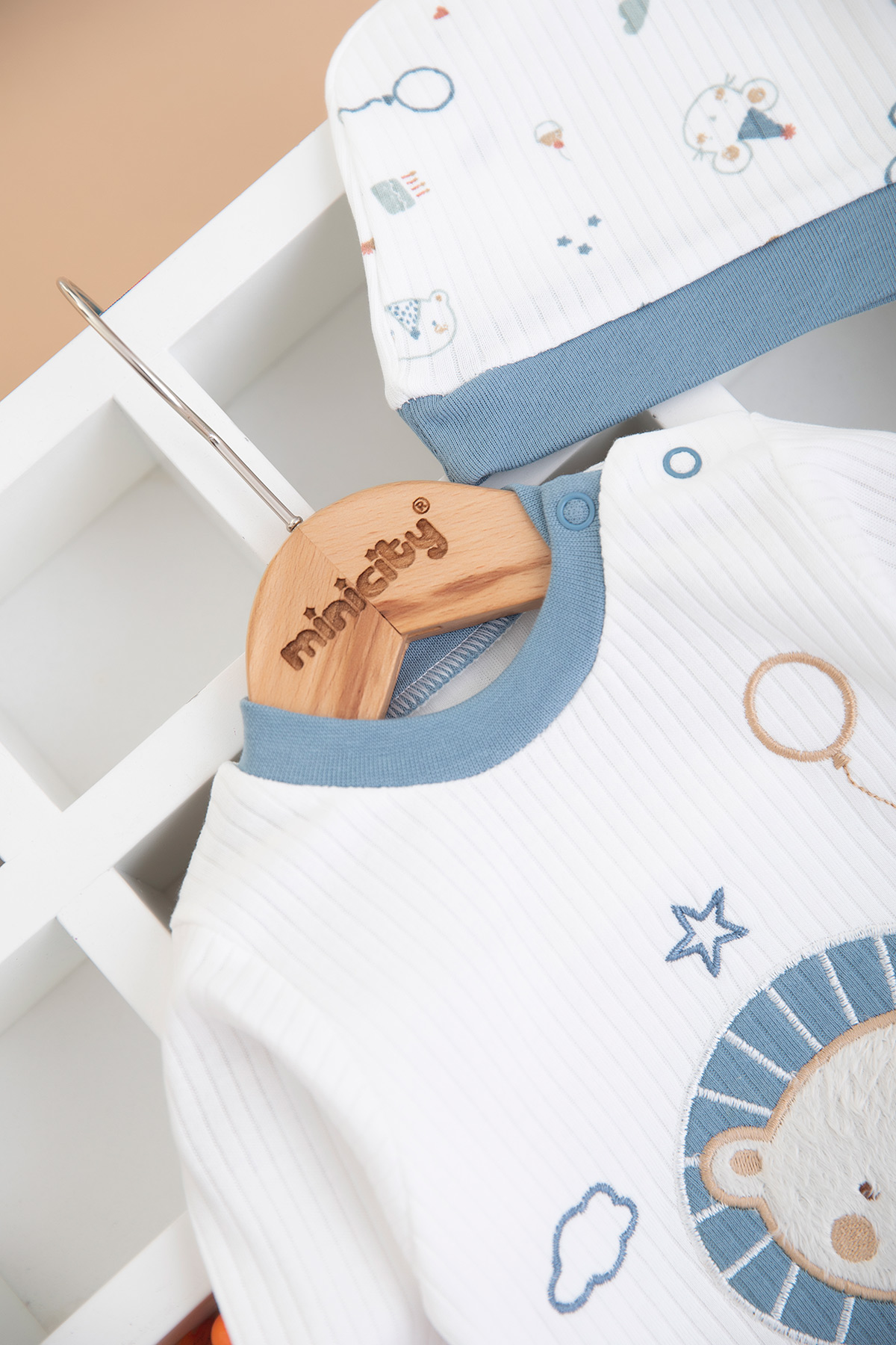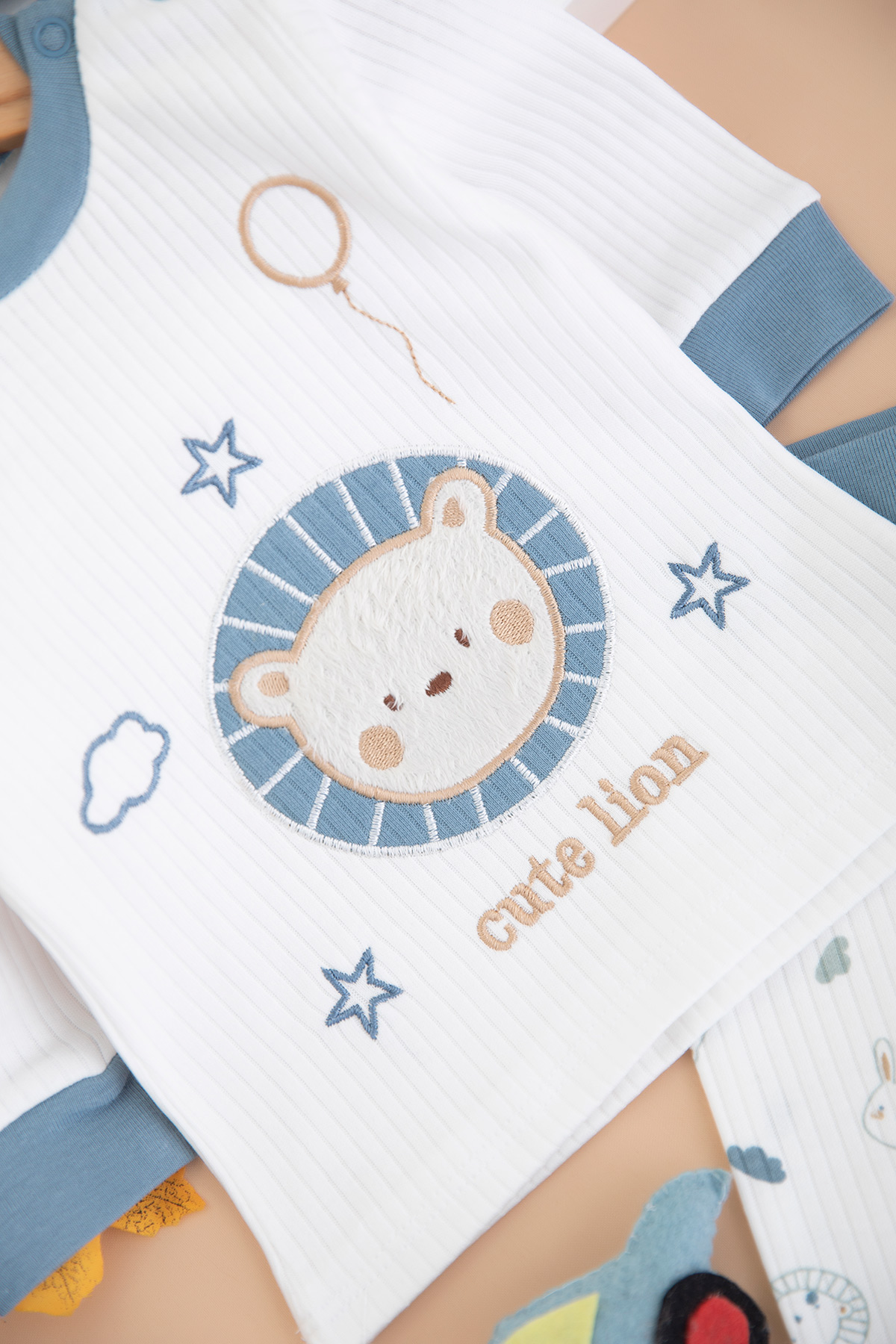 Erkek Bebek Kaplan Nakışlı Zıbın Takımı - 2214 (3-9 Ay)