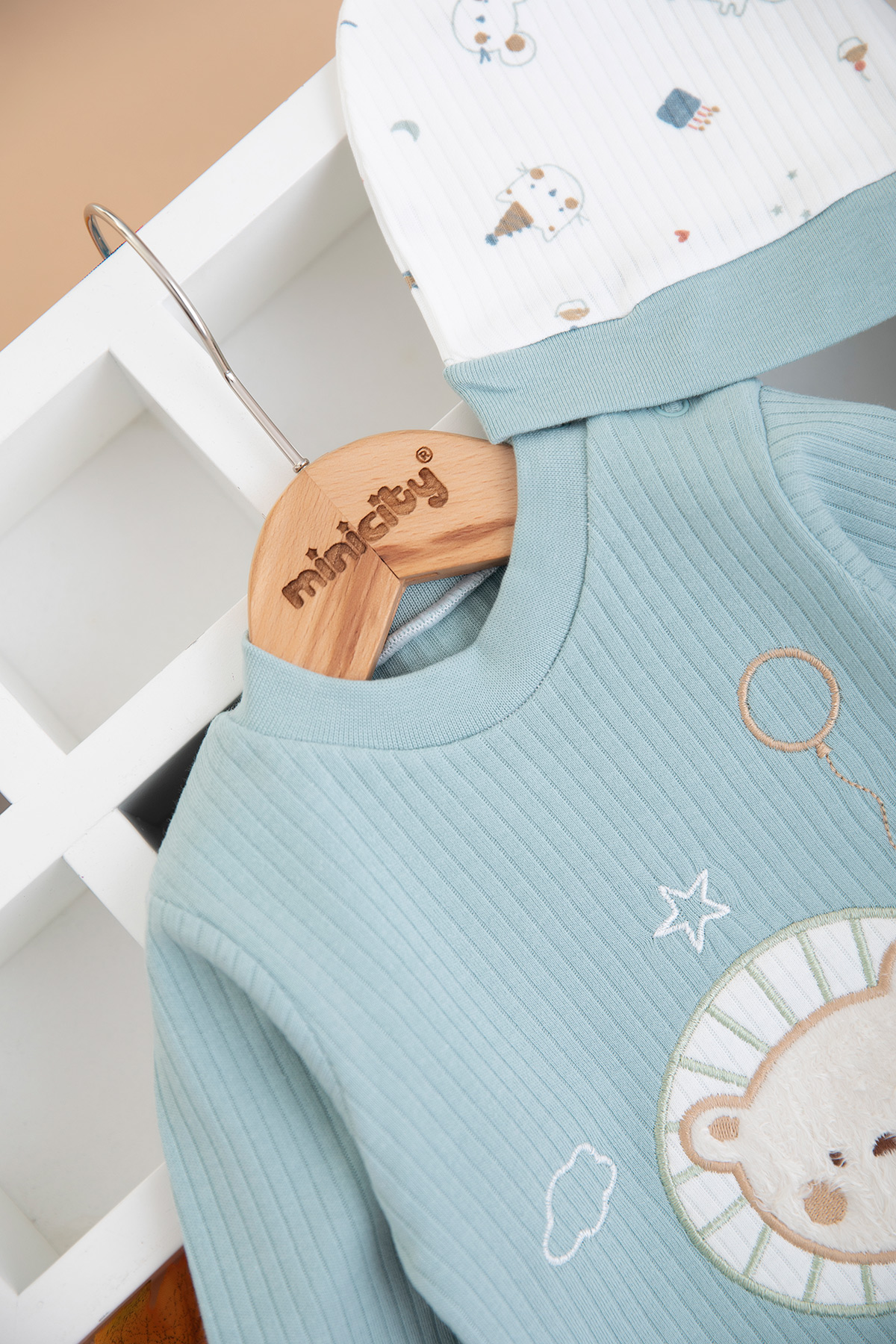 Erkek Bebek Kaplan Nakışlı Zıbın Takımı - 2214 (3-9 Ay)