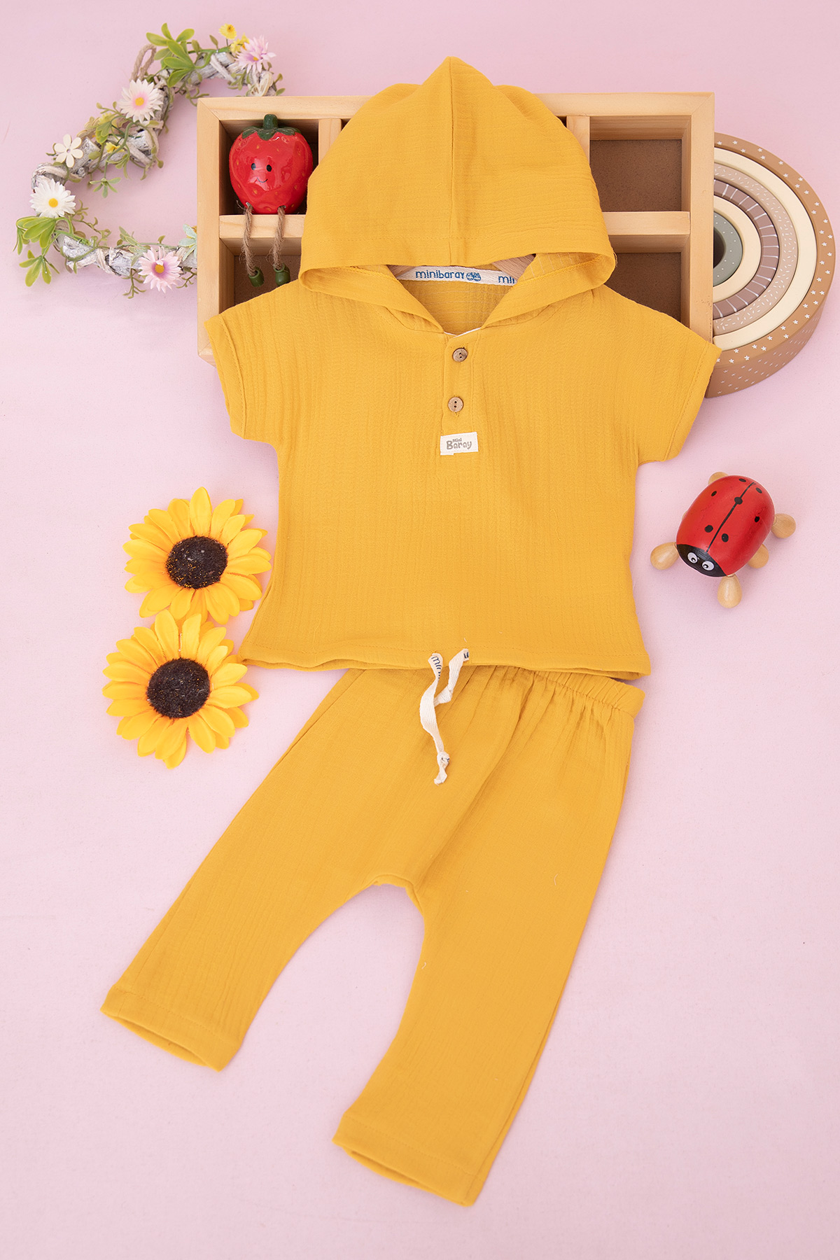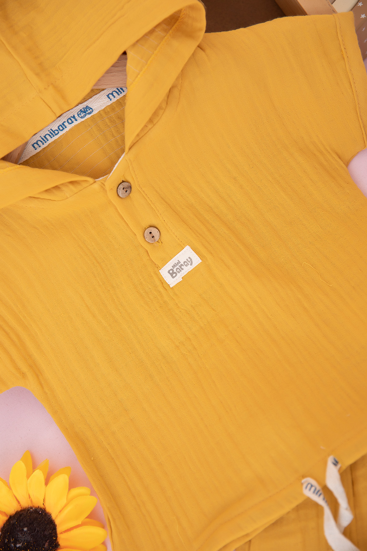 Erkek Bebek Kapşonlu Bağcıklı Müslin Takım - 796 (9-18 Ay)