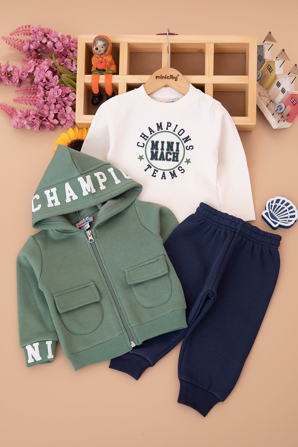 Erkek Bebek Kapşonlu Üçlü Üçip Takım - 25969 (9-24 Ay)