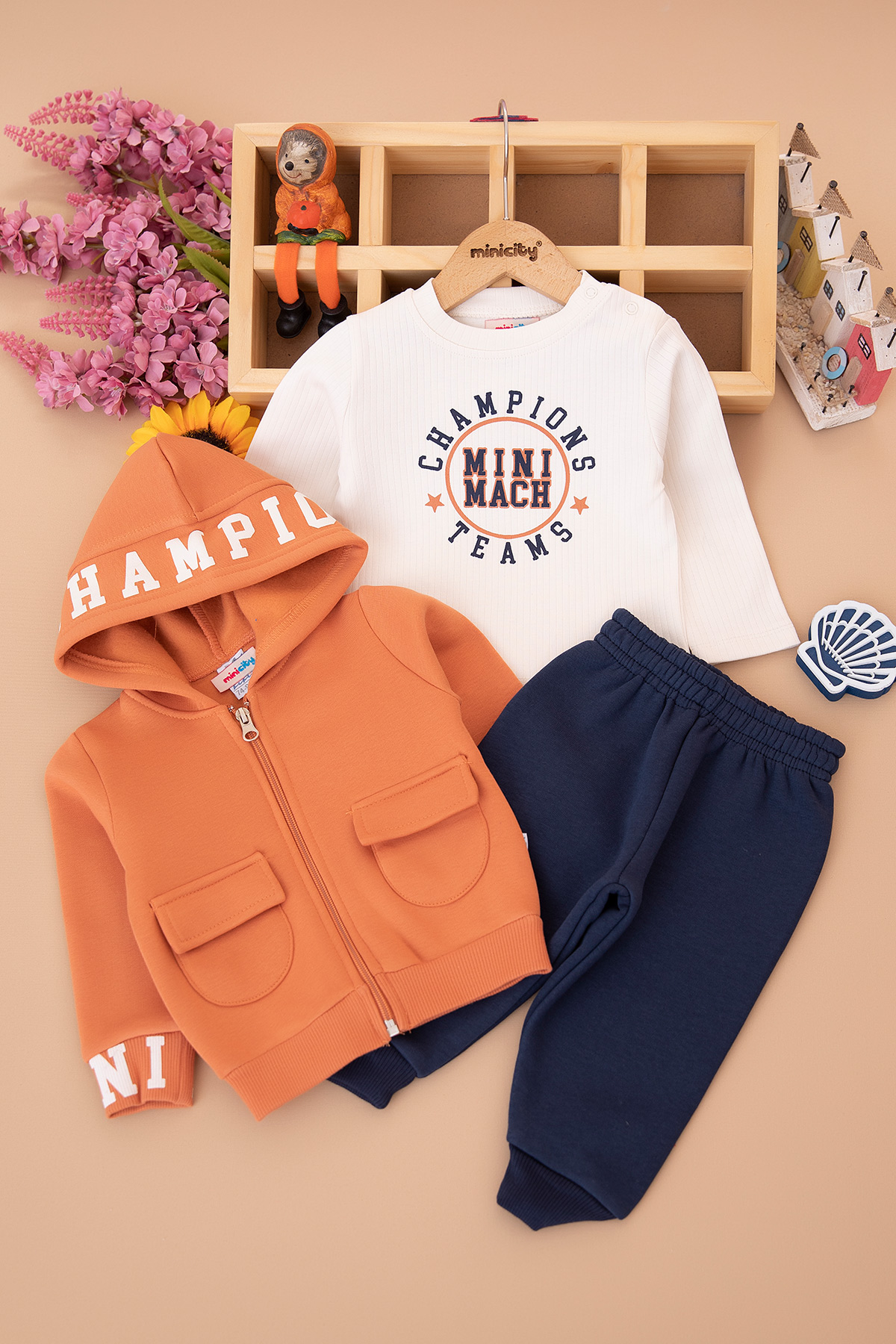 Erkek Bebek Kapşonlu Üçlü Üçip Takım - 25969 (9-24 Ay)