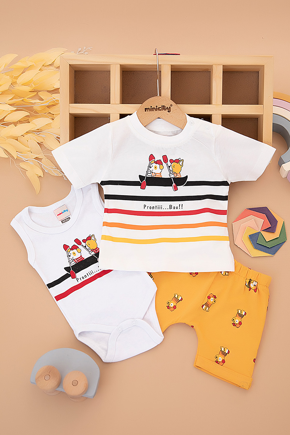 Erkek Bebek Kayıklı Ayıcık Şortlu Takım - 25473 (3-12 Ay)