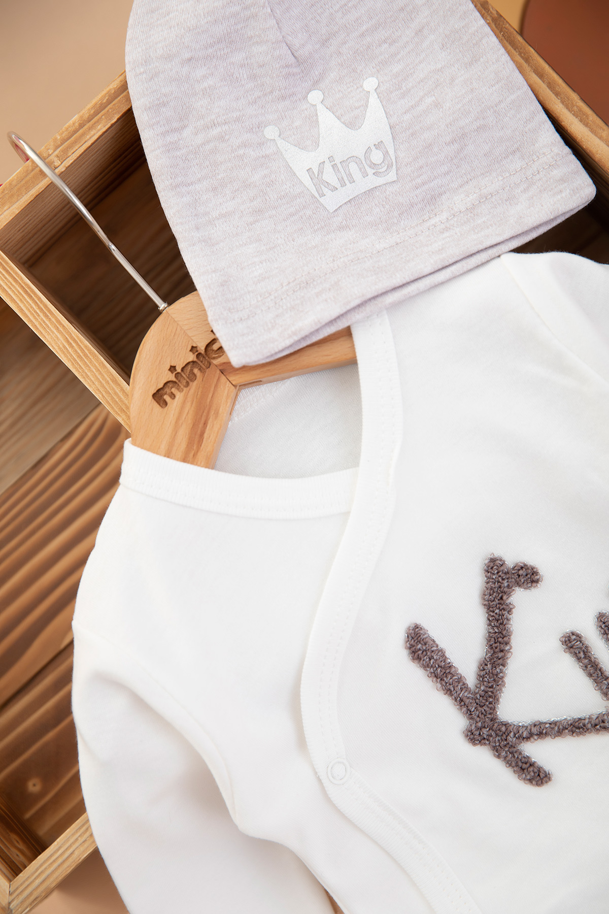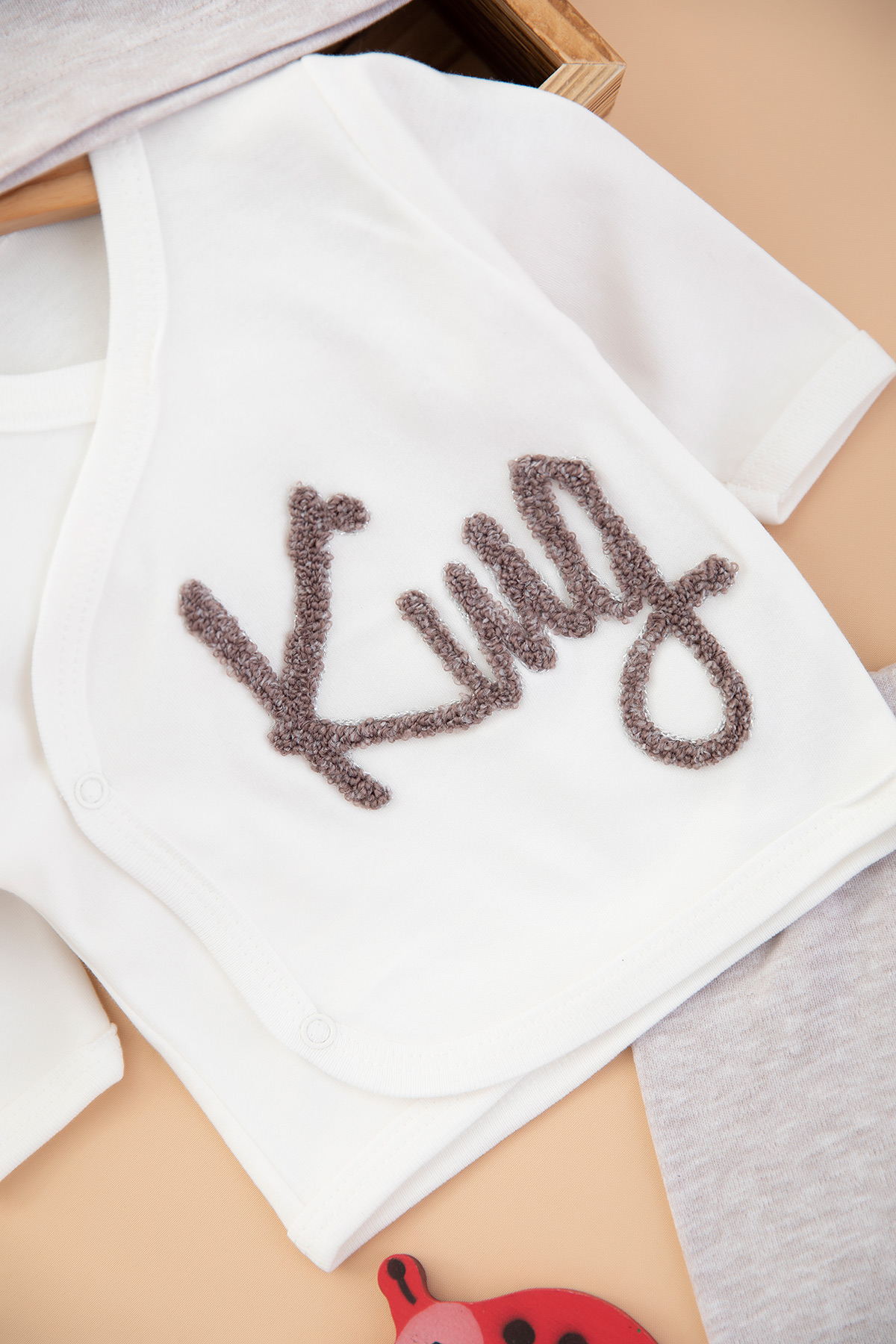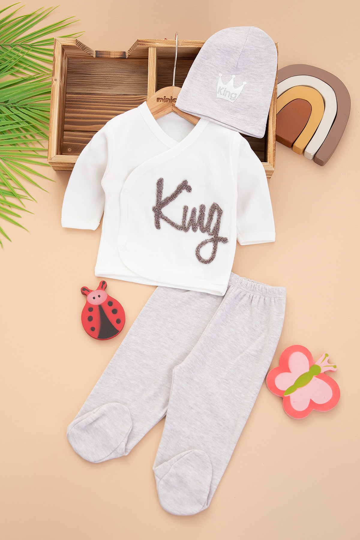 Erkek Bebek King Nakışlı 3`Lü Zıbın Seti - 1020 (0-3 Ay)