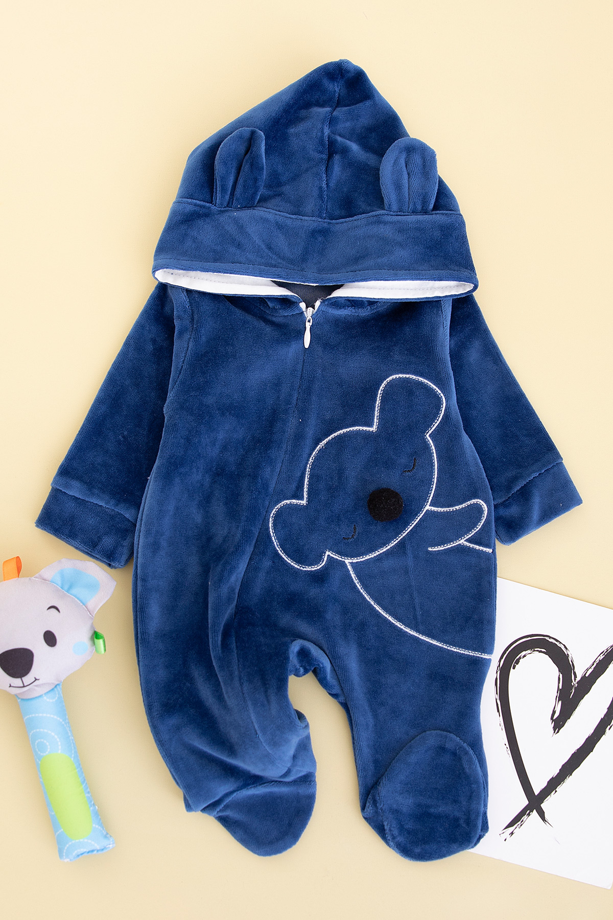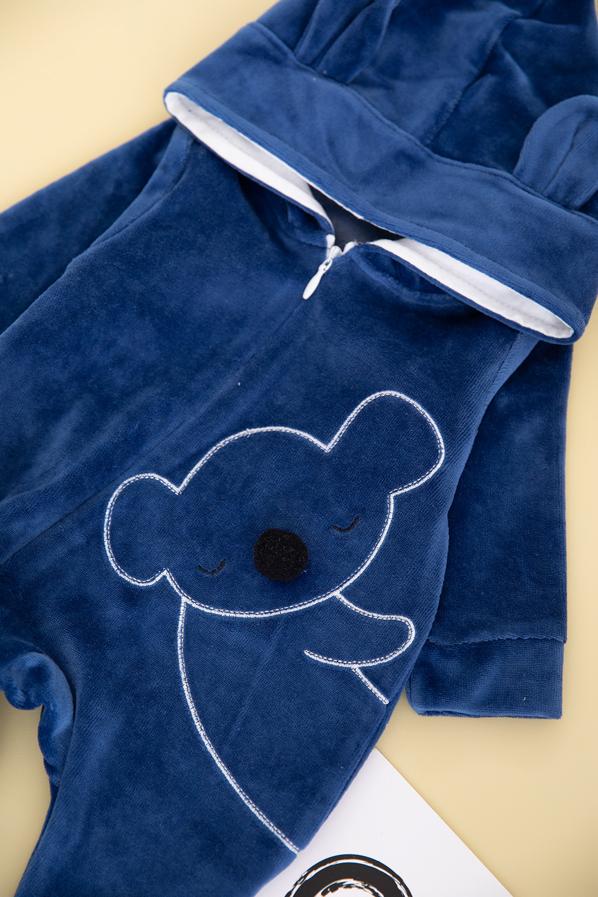 Erkek Bebek Koala Nakışlı Kadife Tulum - 8263 (0-6 Ay)