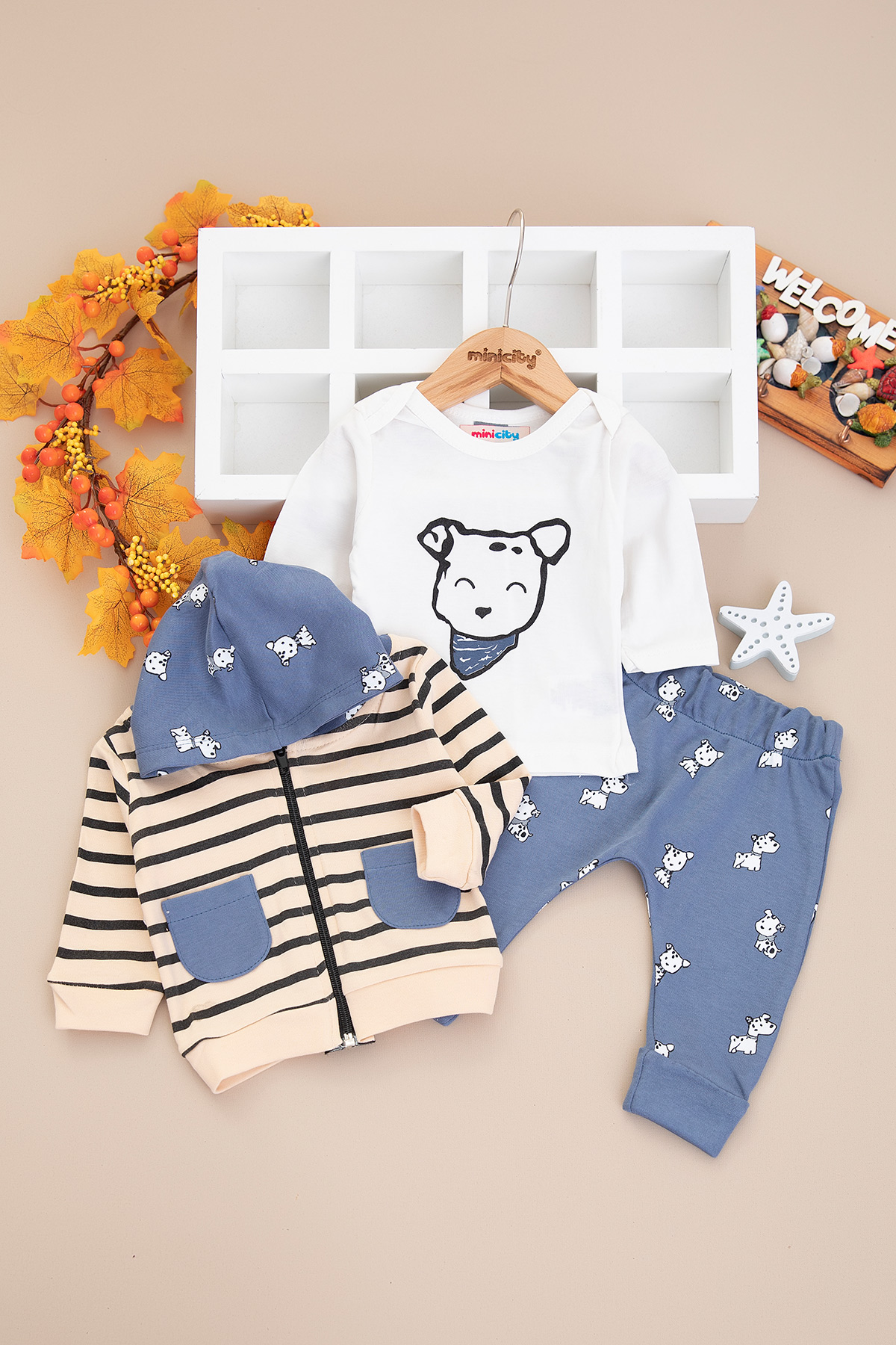 Erkek Bebek Köpek Baskılı Hırkalı Takım - 14110 (0-12 Ay)