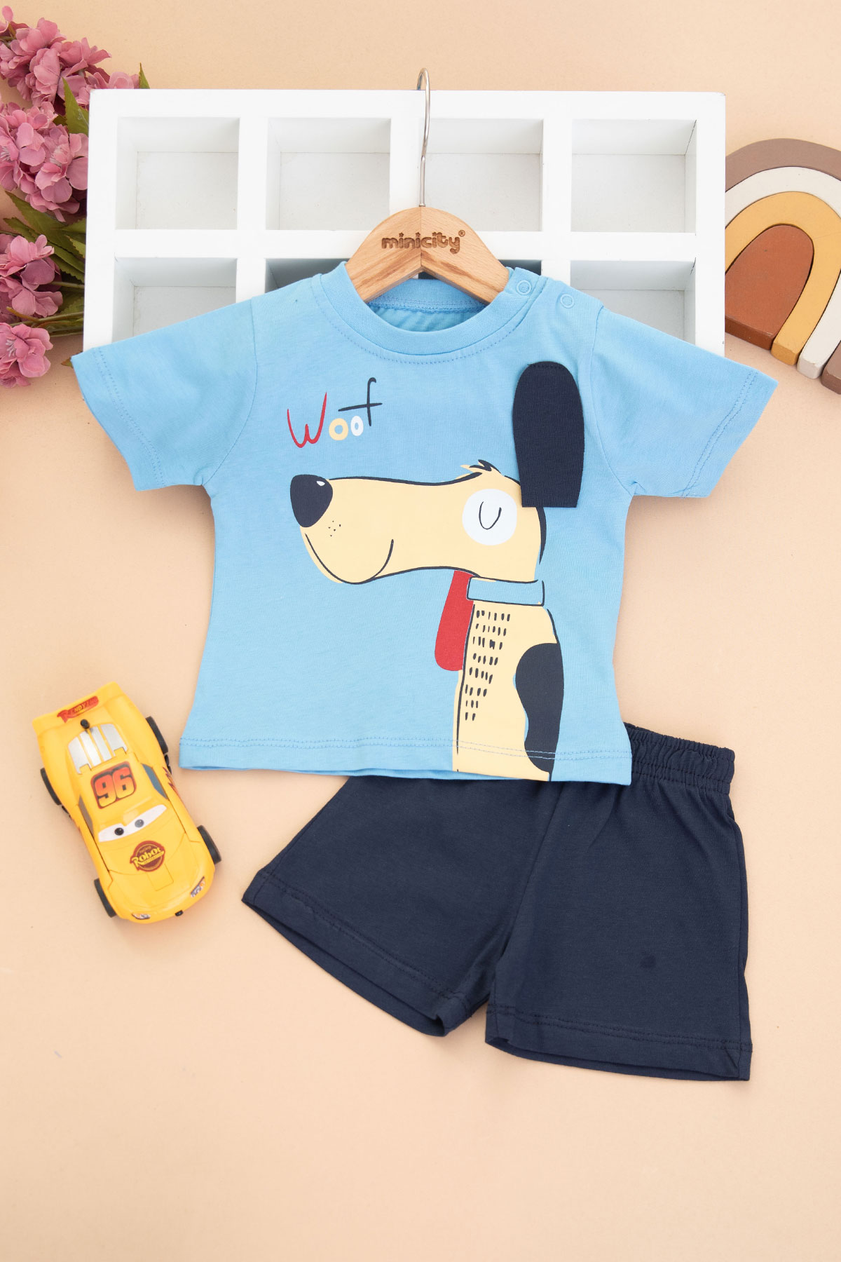 Erkek Bebek Köpek Baskılı Şortlu Takım - 26378 (9-24 Ay)