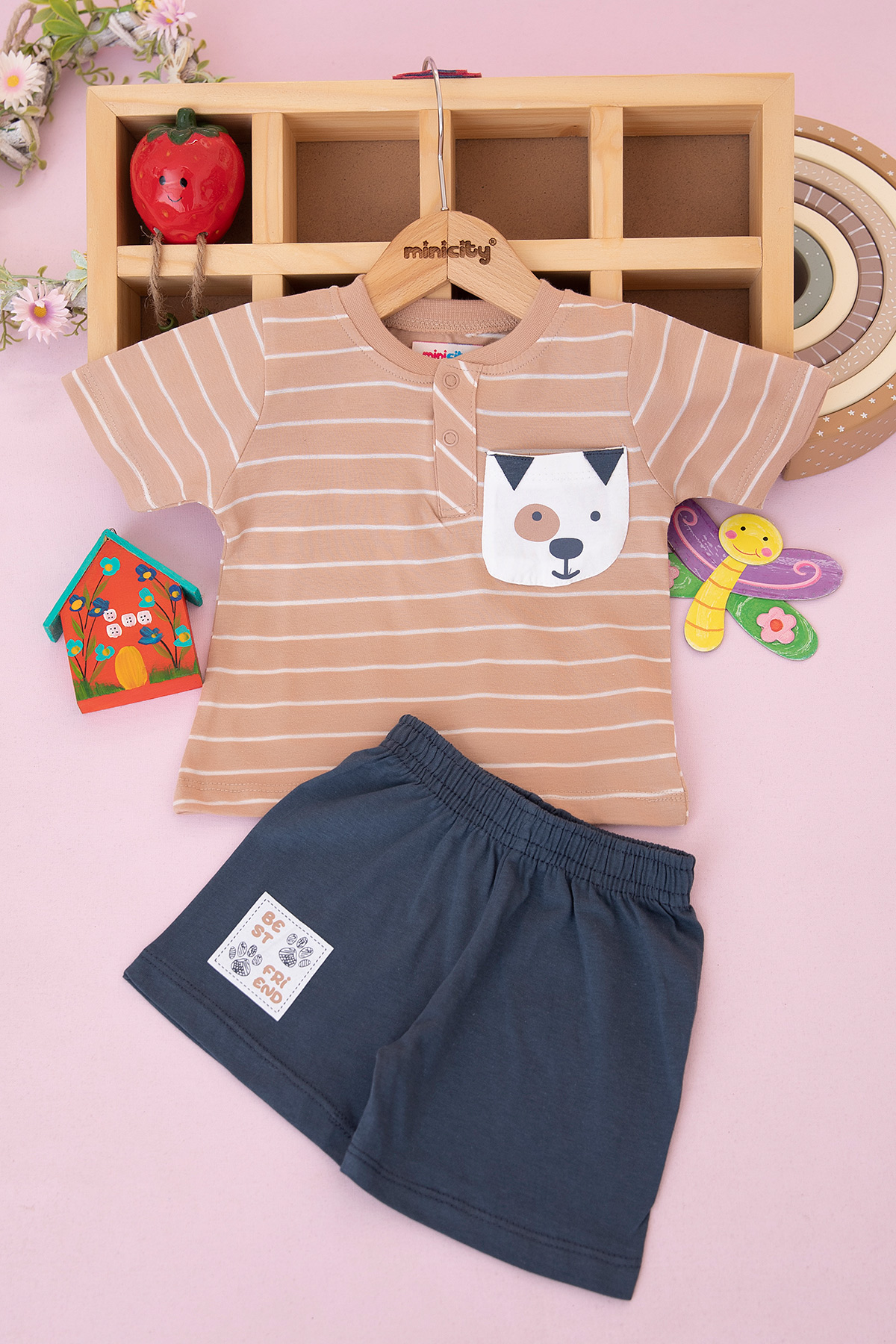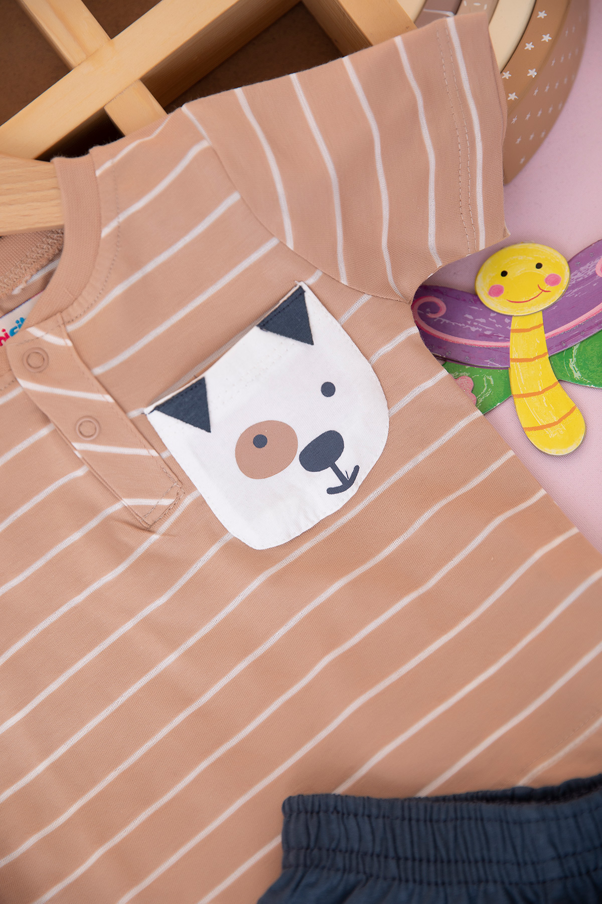 Erkek Bebek Köpek Cepli Şortlu Takım - 26402 (9-24 Ay)