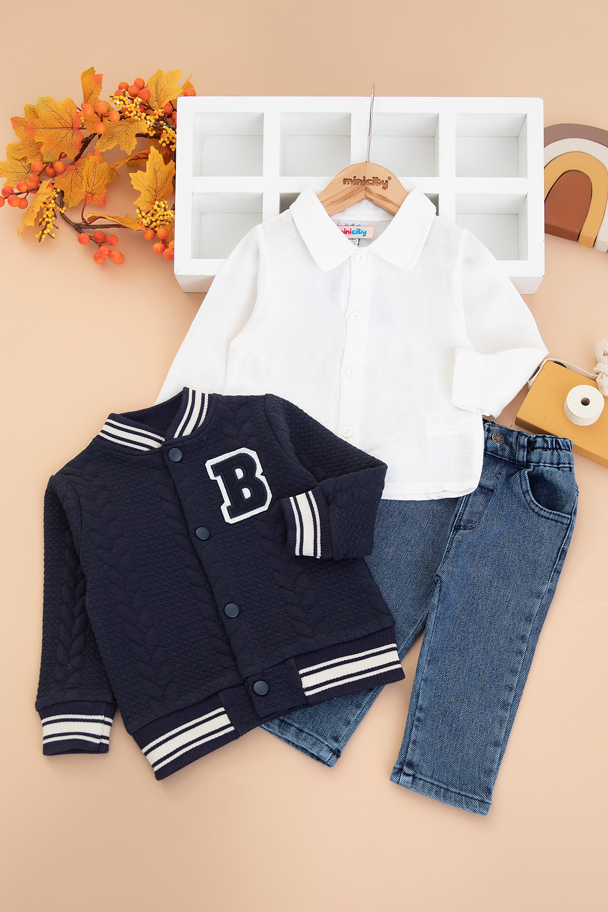 Erkek Bebek Korlu Gömlekli Üçlü Takım - 26082 (9-24 Ay)