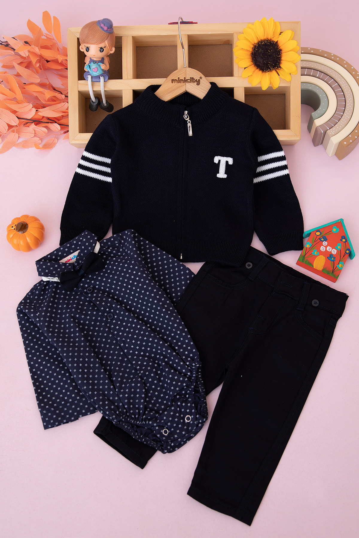 Erkek Bebek Koyu Zemin Trikolu Takım - 13014 (6-24 Ay)