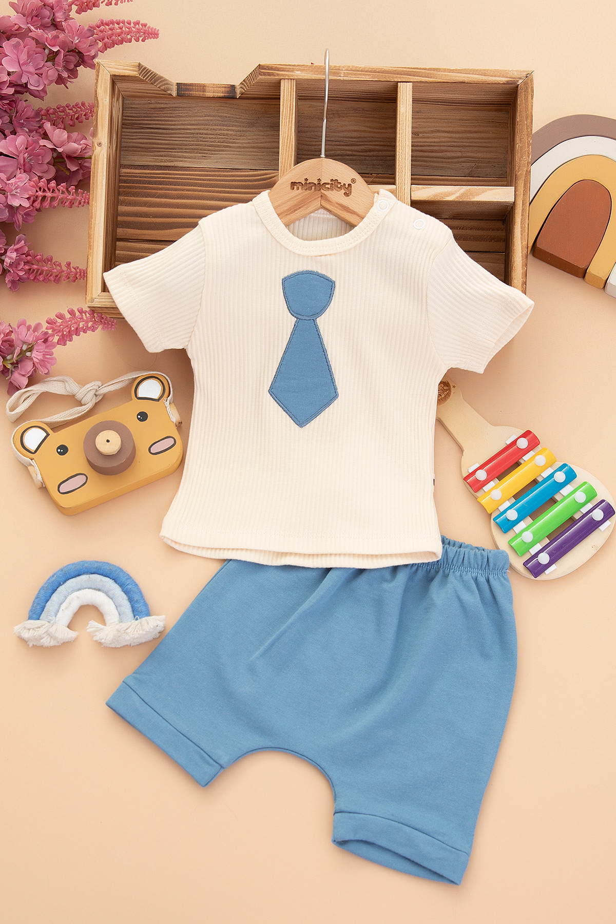 Erkek Bebek Kravat Nakışlı Şortlu Takım - 2051 (6-18 Ay)