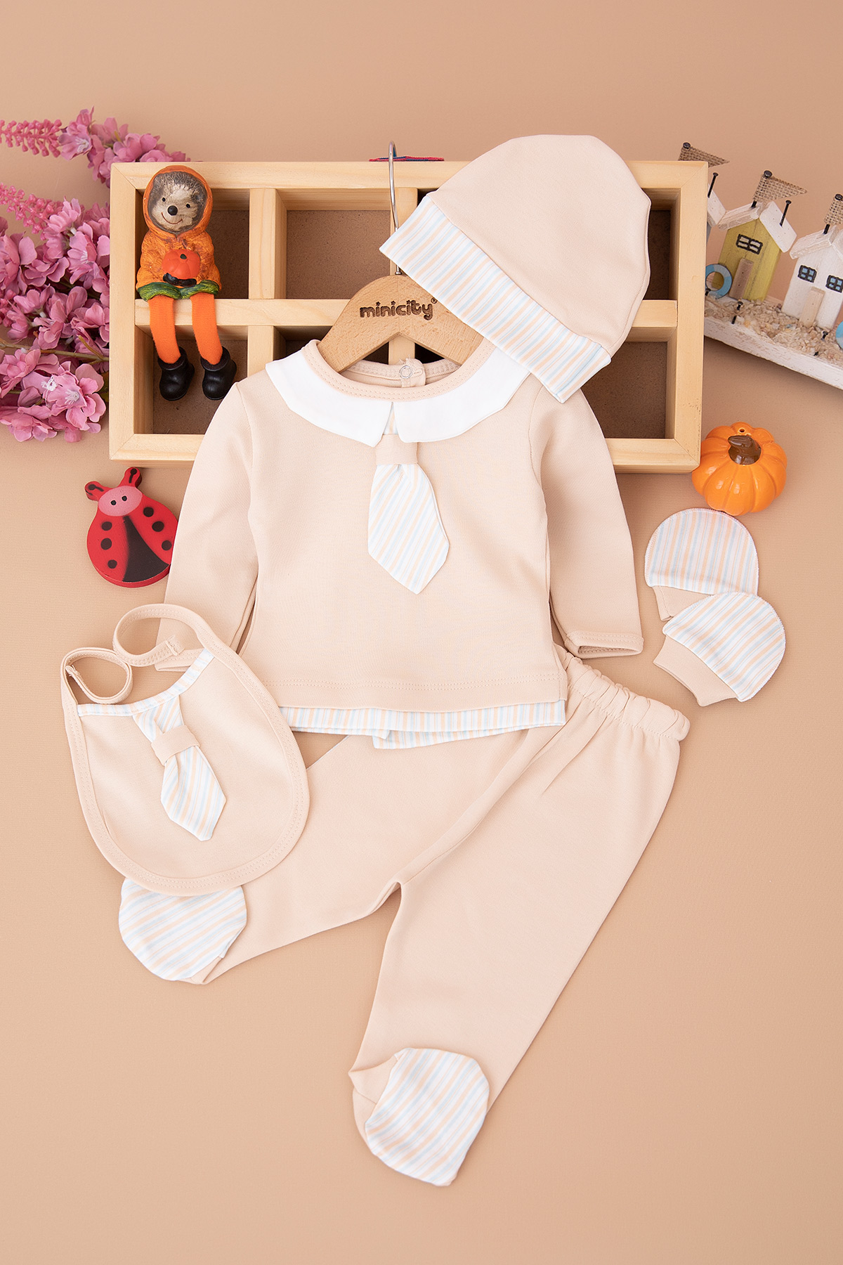 Erkek Bebek Kravatlı 5`Li Zıbın Seti - 8005