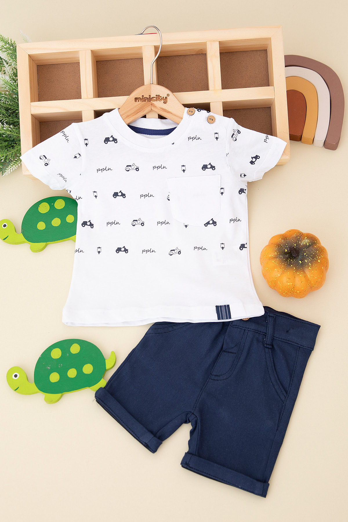 Erkek Bebek Küçük Arabalı Şortlu Takım - 3944 (9-24 Ay)