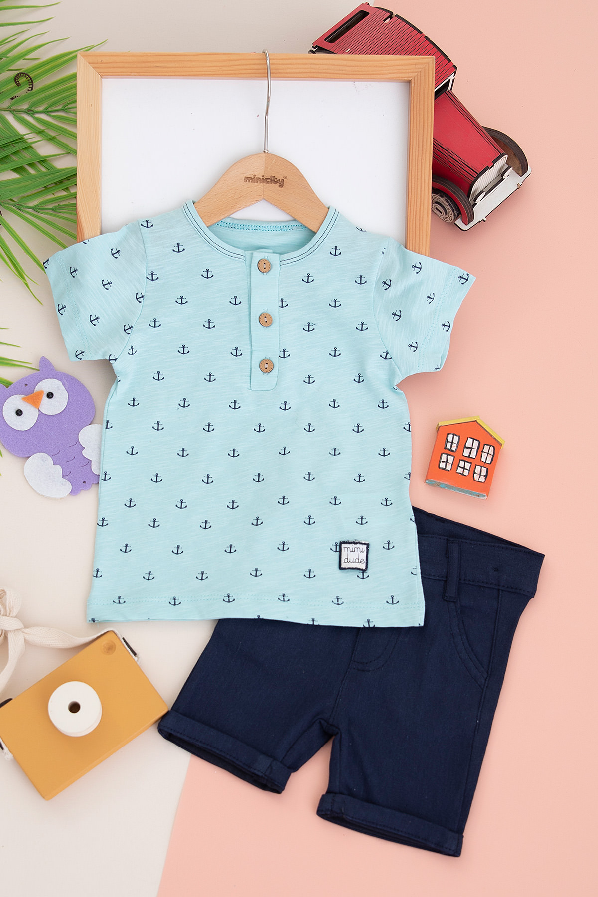 Erkek Bebek Küçük Çapalı Şortlu Takım - 3907 (9-24 Ay)
