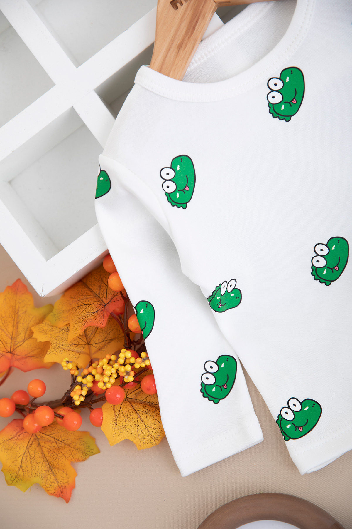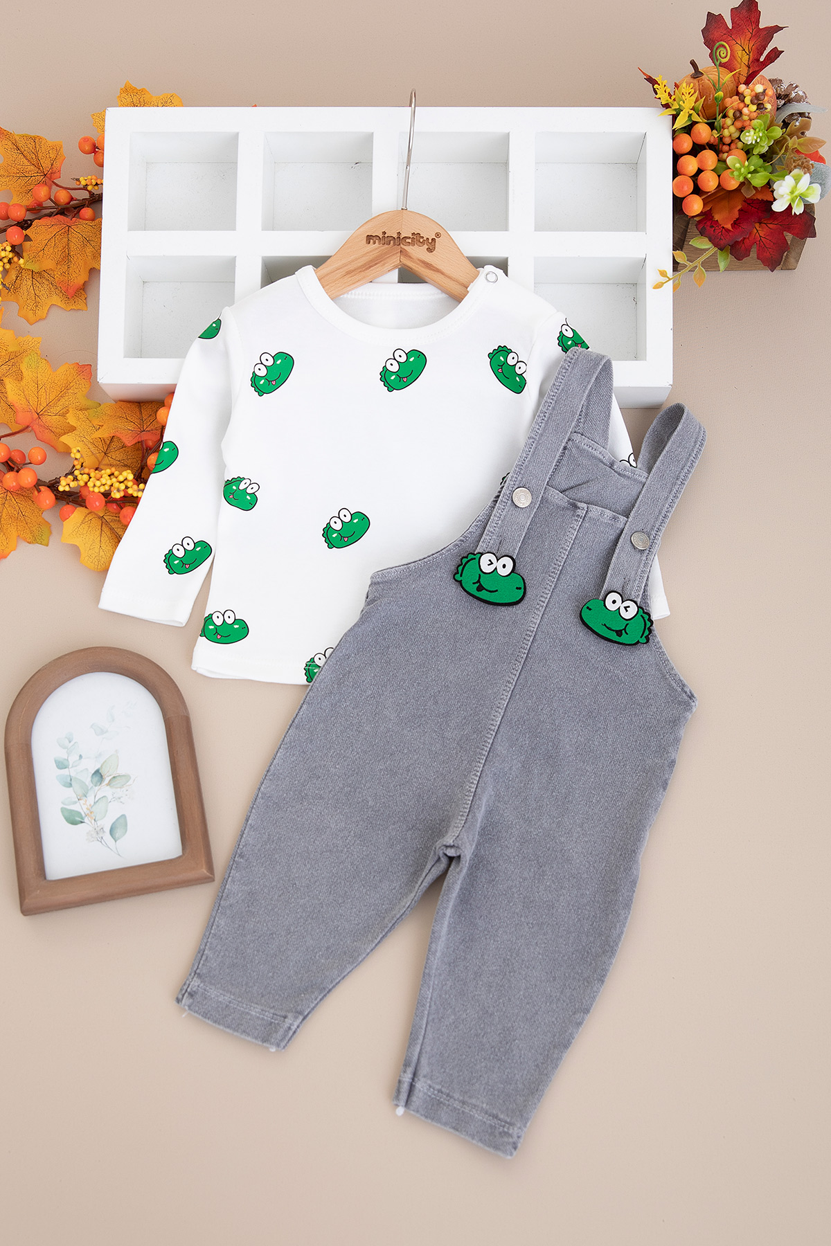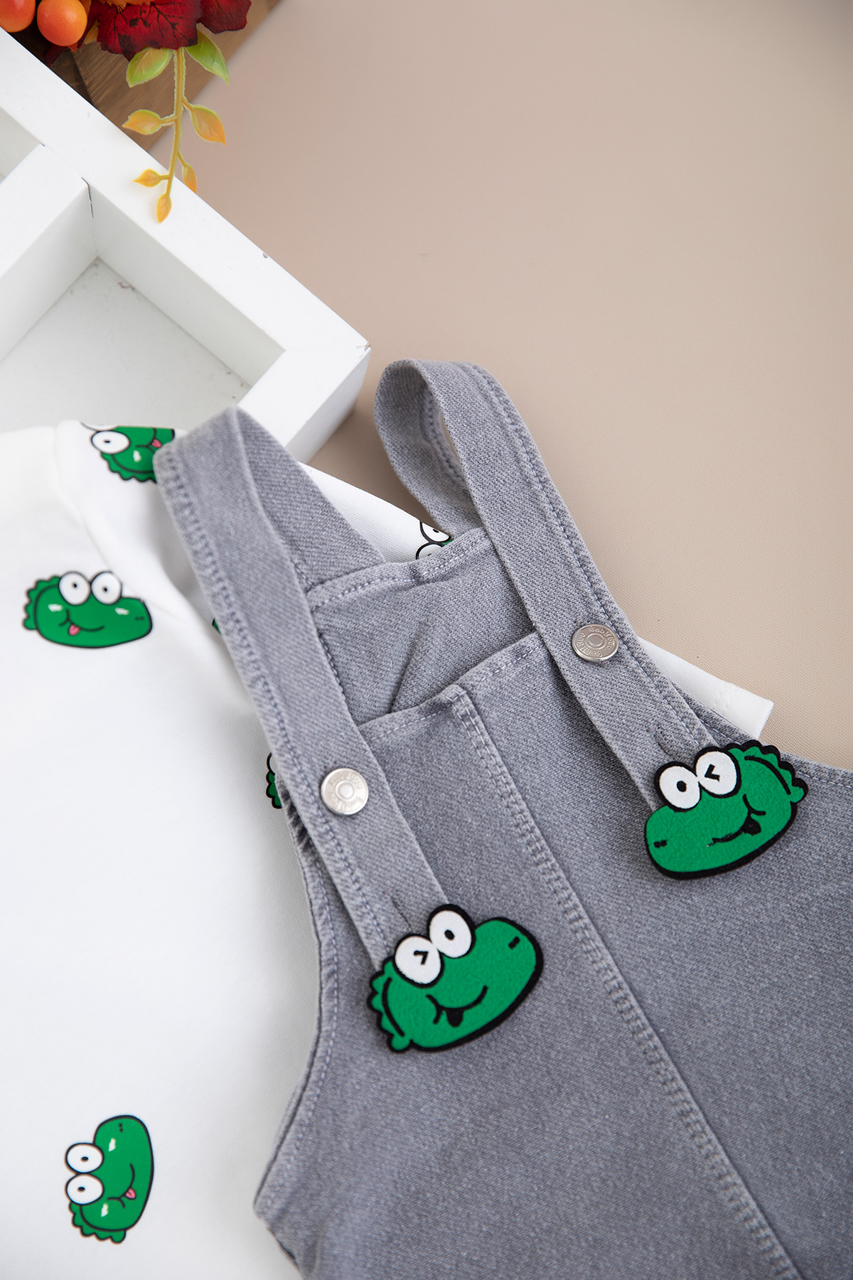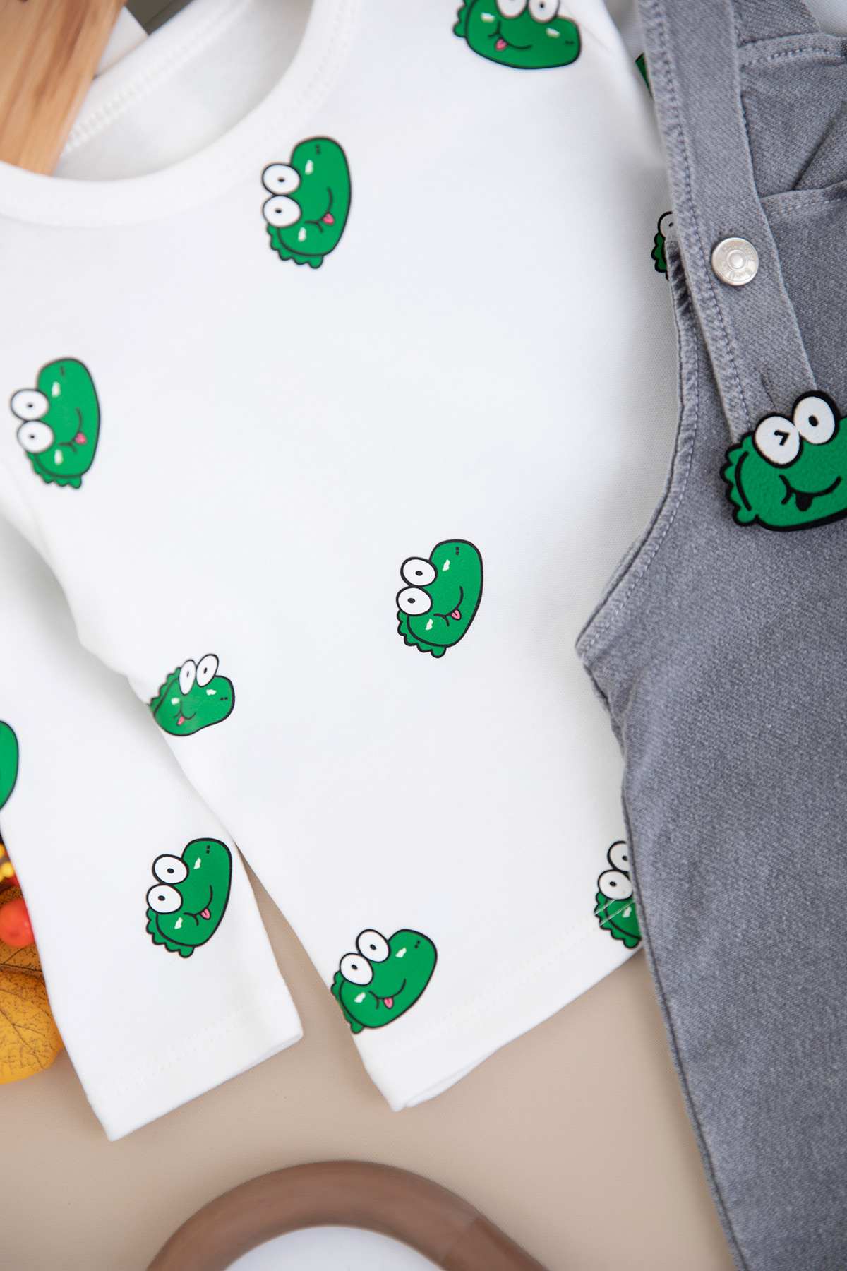 Erkek Bebek Kurbağa Baskılı Salopet - 0341 (9-24 Ay)
