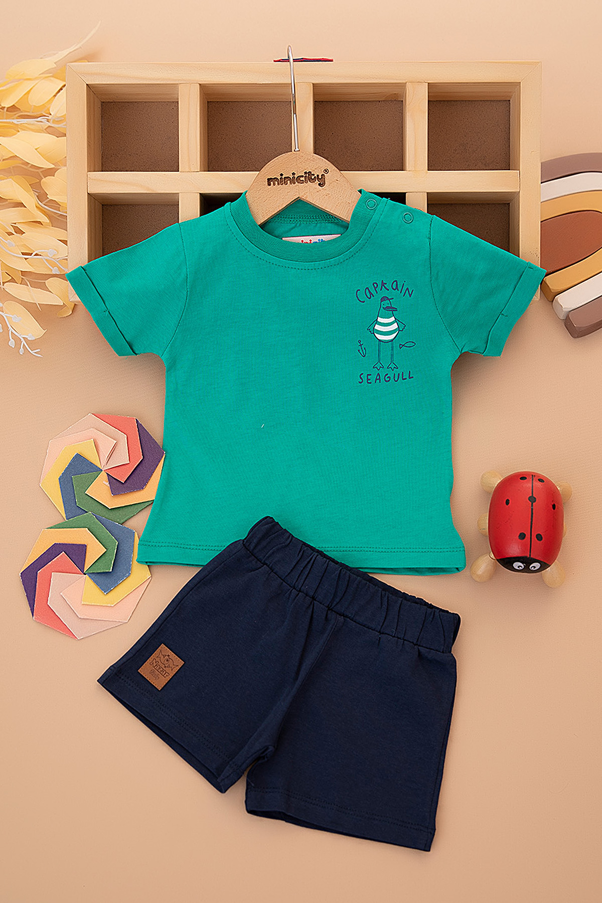 Erkek Bebek Kuş Baskılı Şortlu Takım - 25493 (9-24 Ay)
