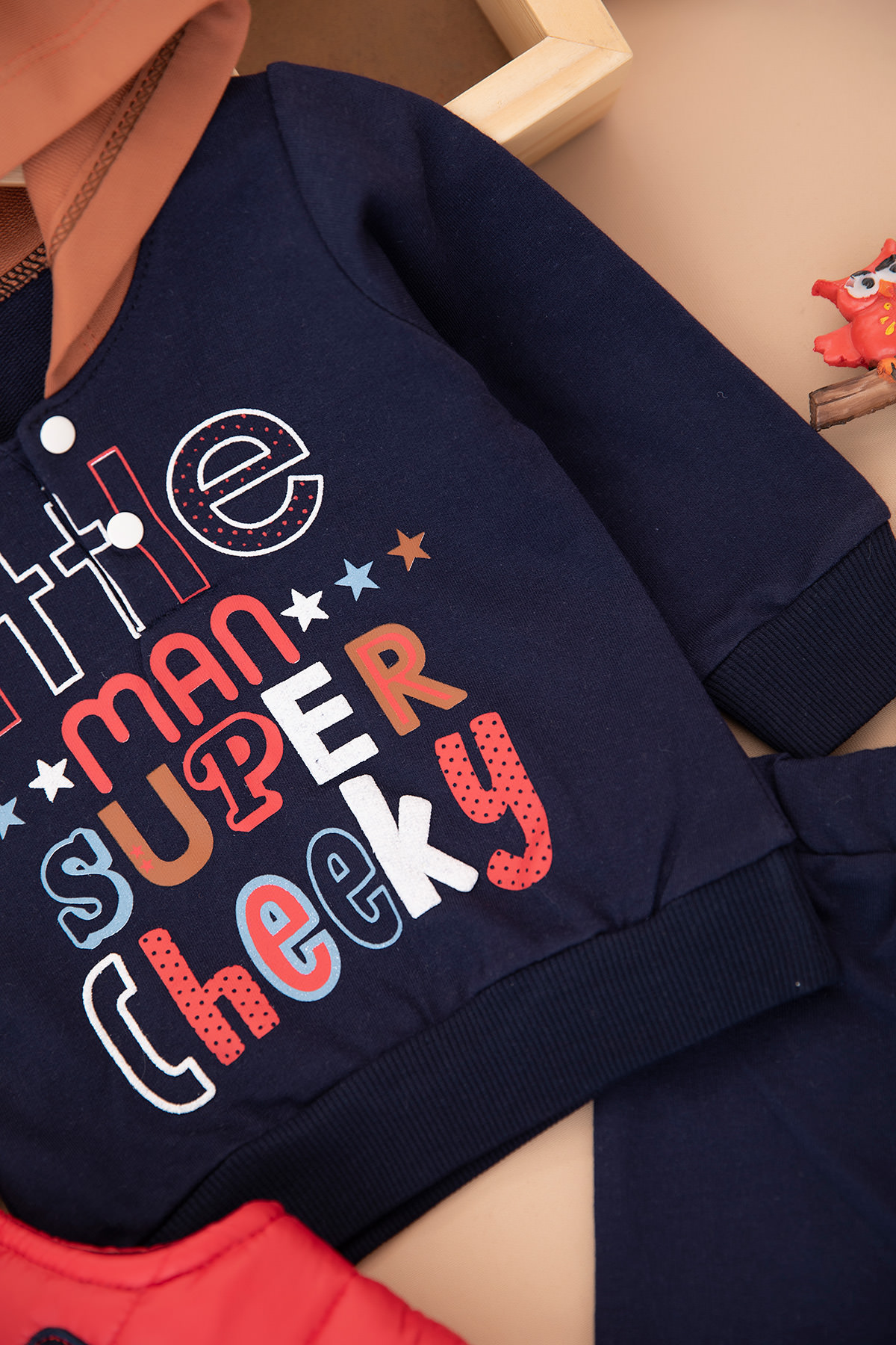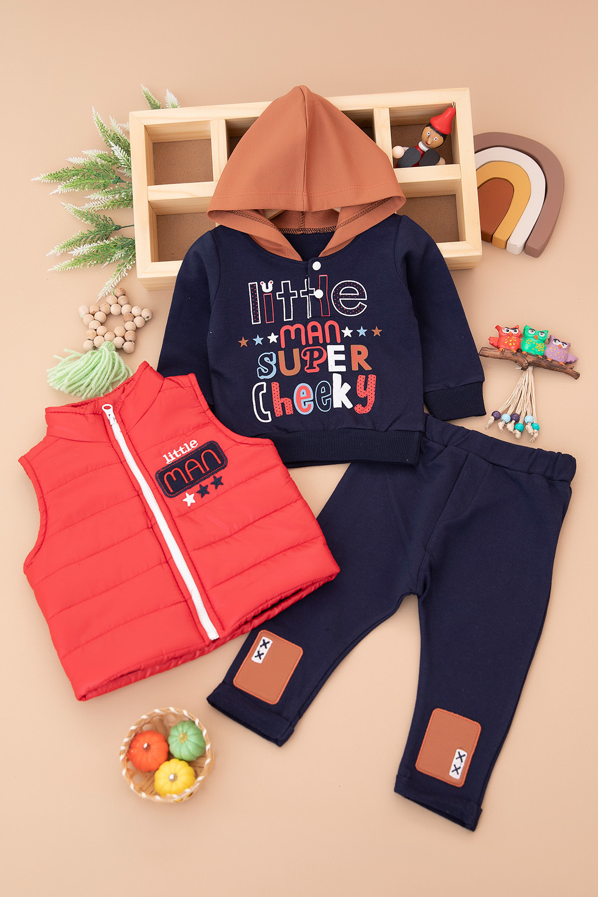 Erkek Bebek Little Man Nakışlı Yelekli Takım - 5058 (9-18 Ay)