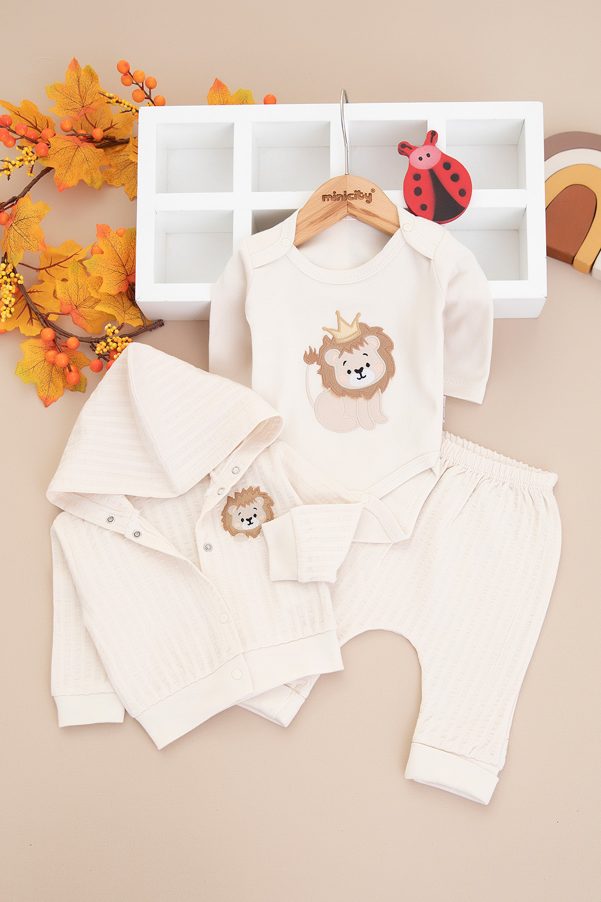 Erkek Bebek Mini Aslan Nakışlı Üçlü Takım - 1236 (3-9 Ay)