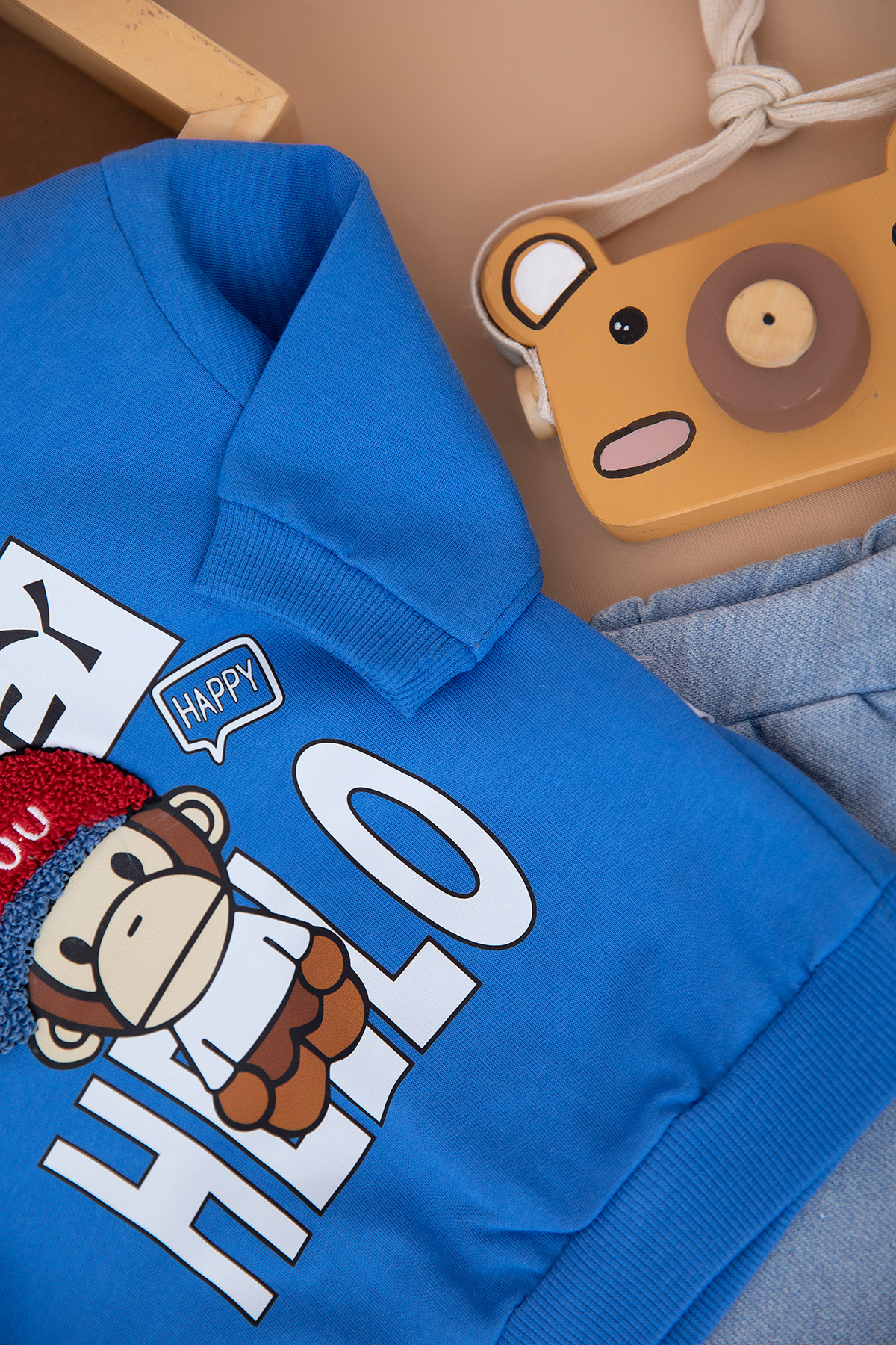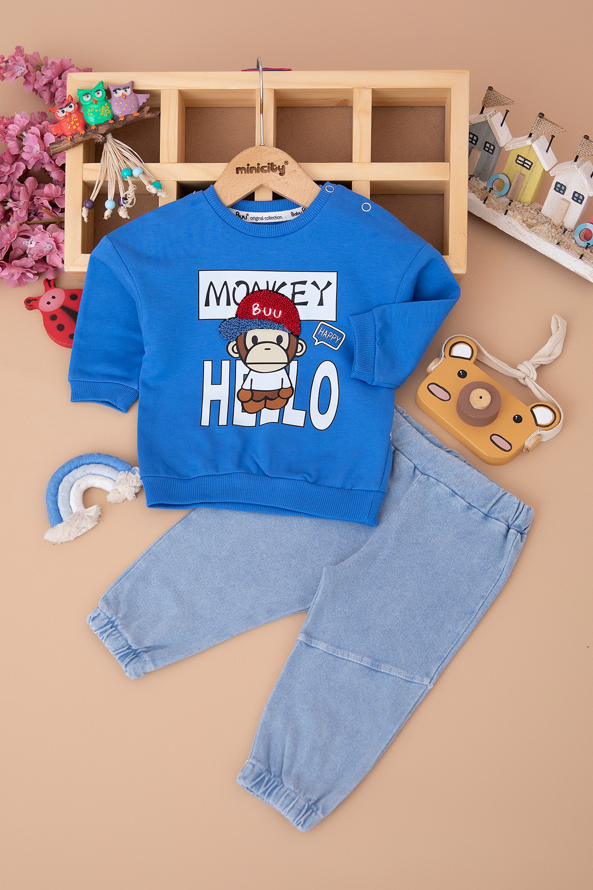 Erkek Bebek Monkey Baskılı Takım - 0331 (9-24 Ay)
