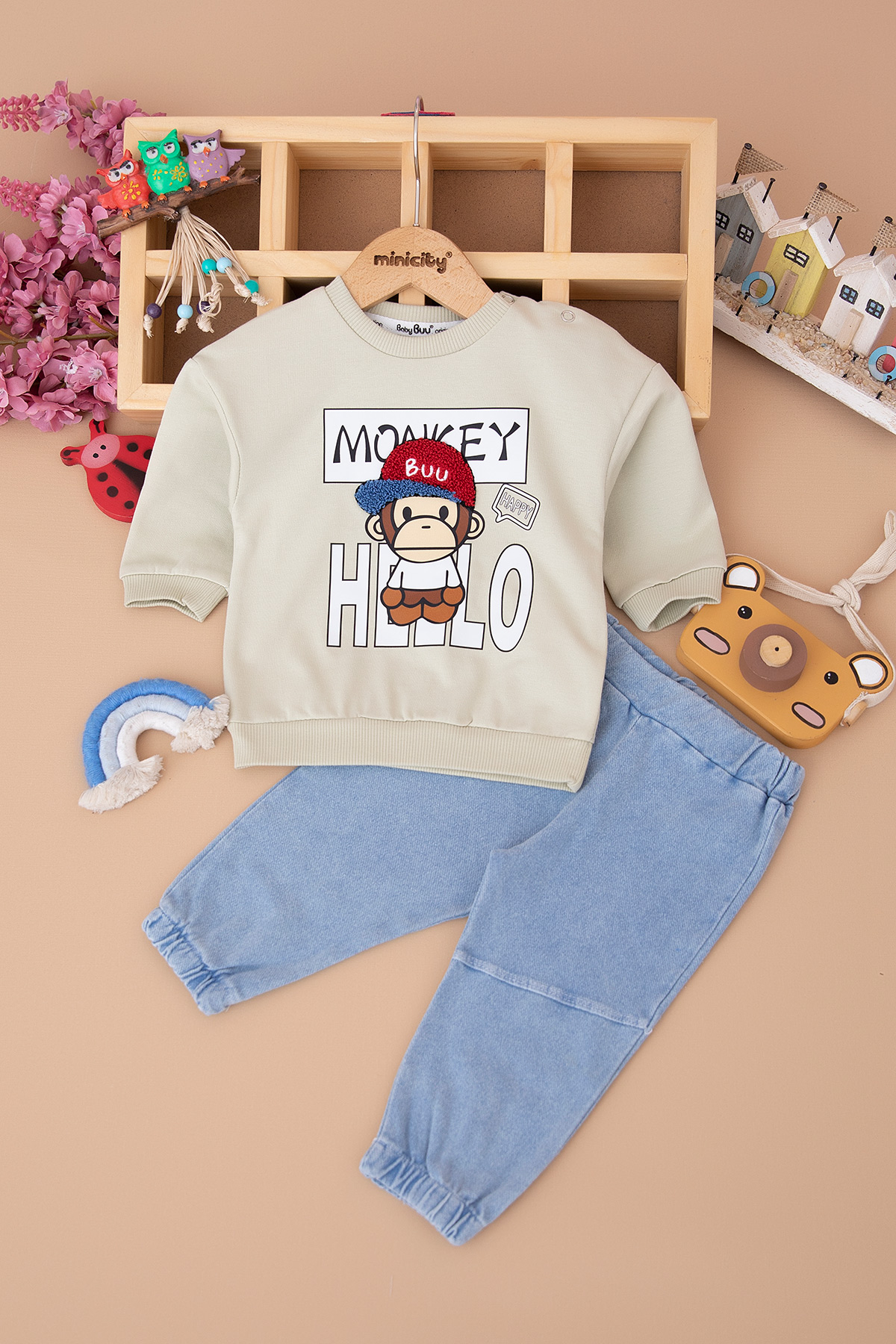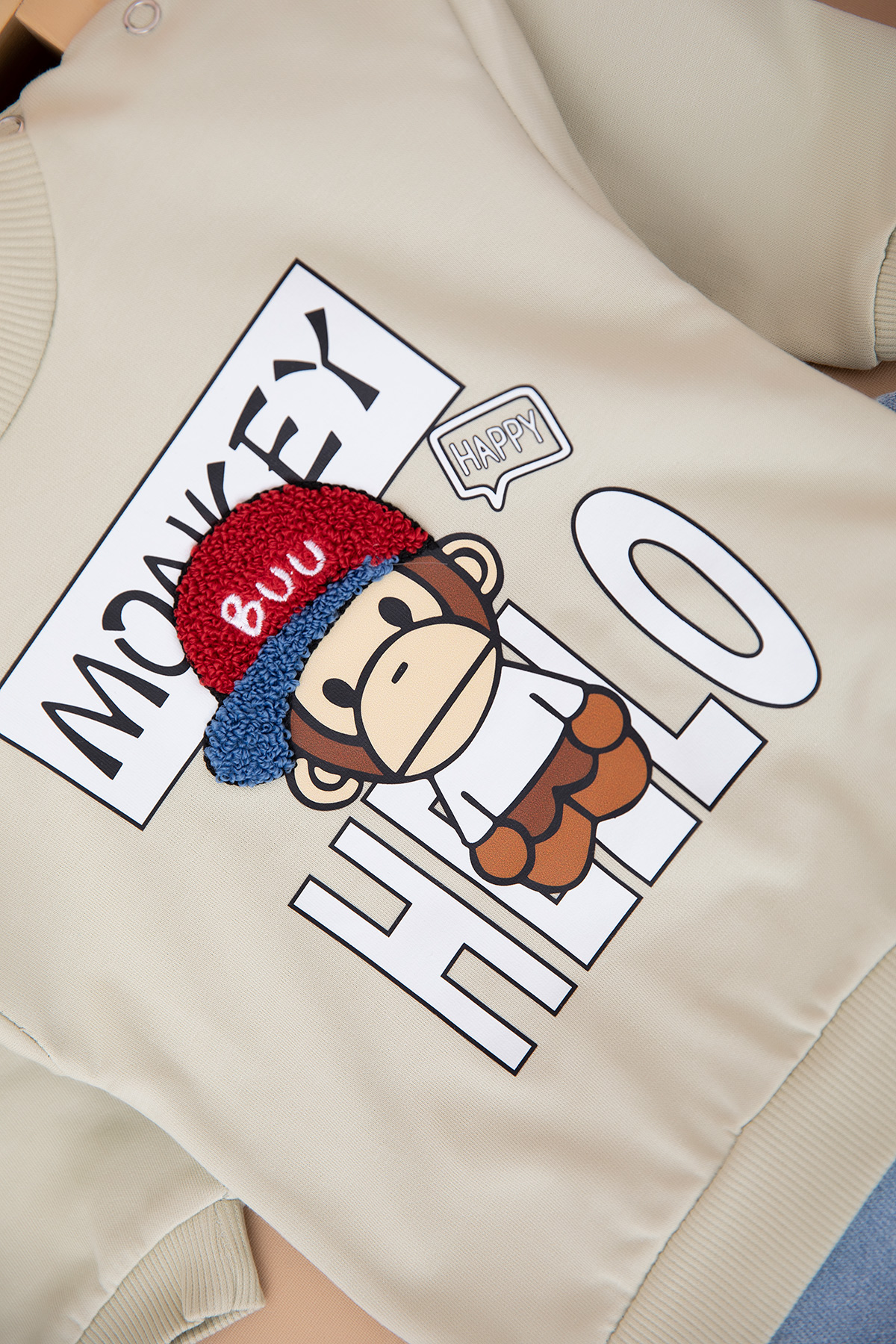 Erkek Bebek Monkey Baskılı Takım - 0331 (9-24 Ay)