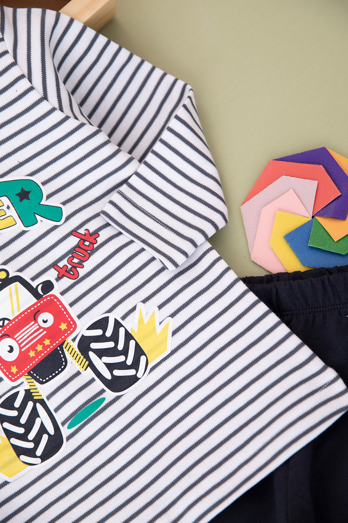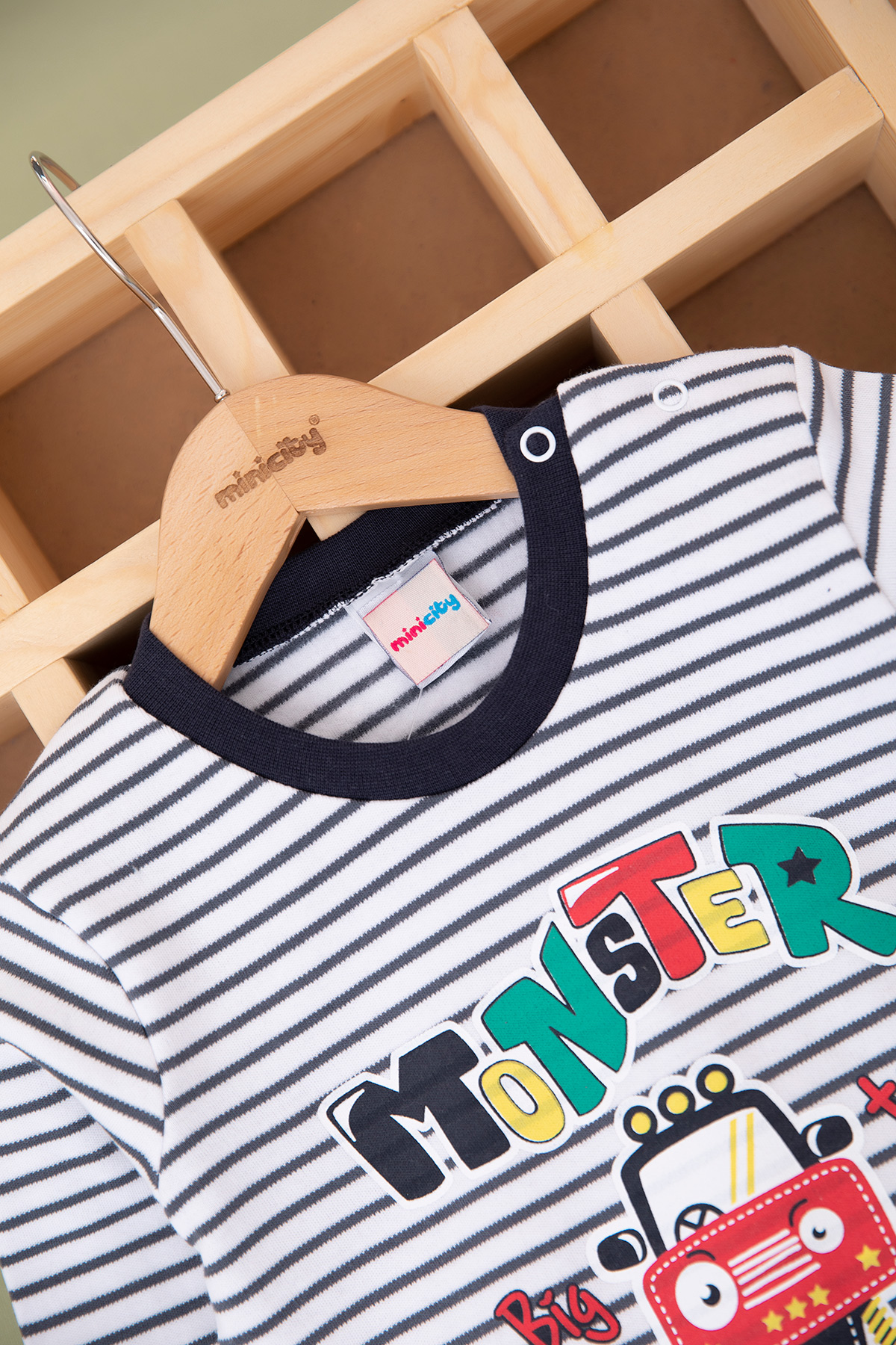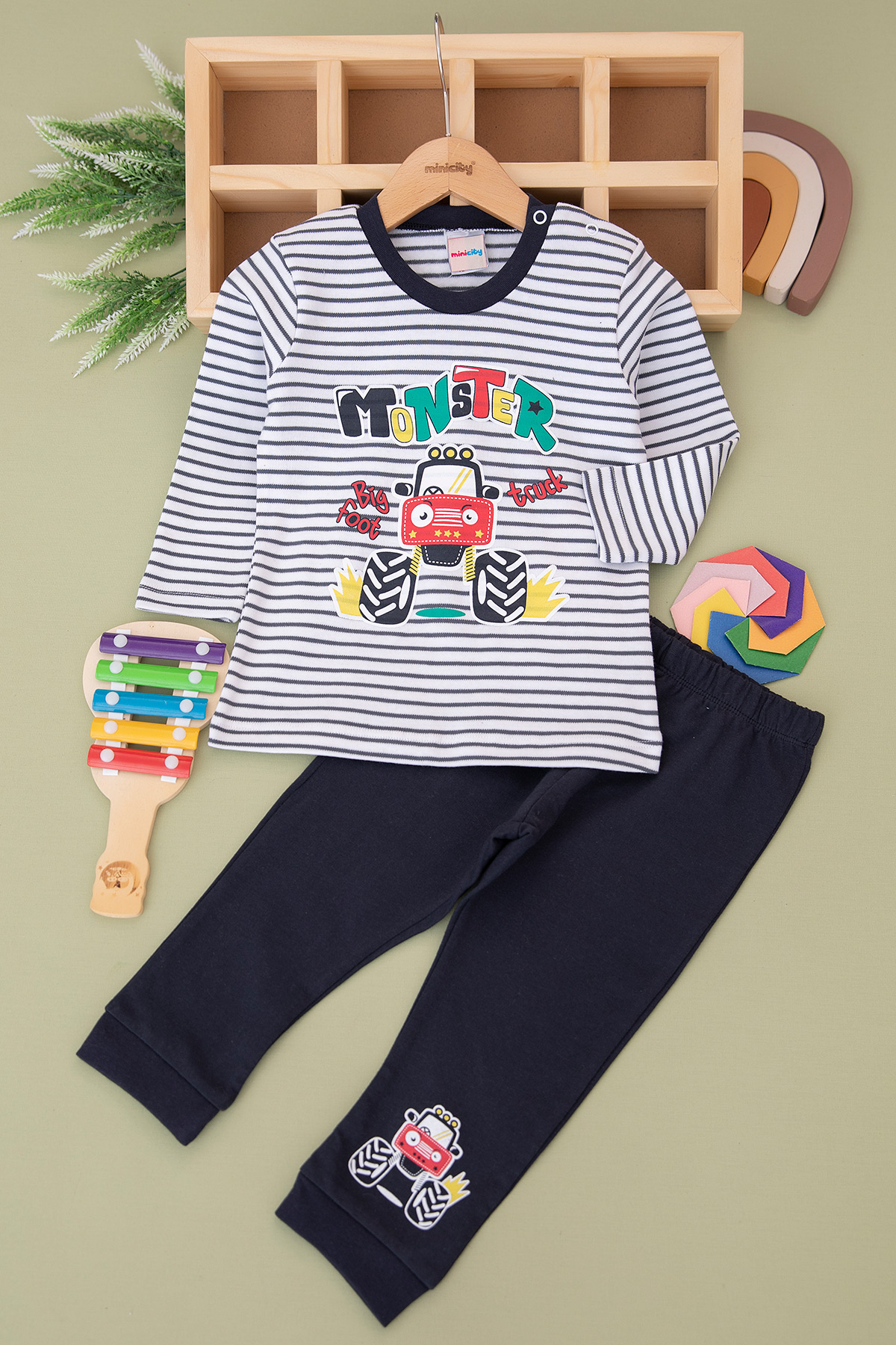 Erkek Bebek Monster Baskılı Çizgili Takım - 21826 (9-24 Ay)