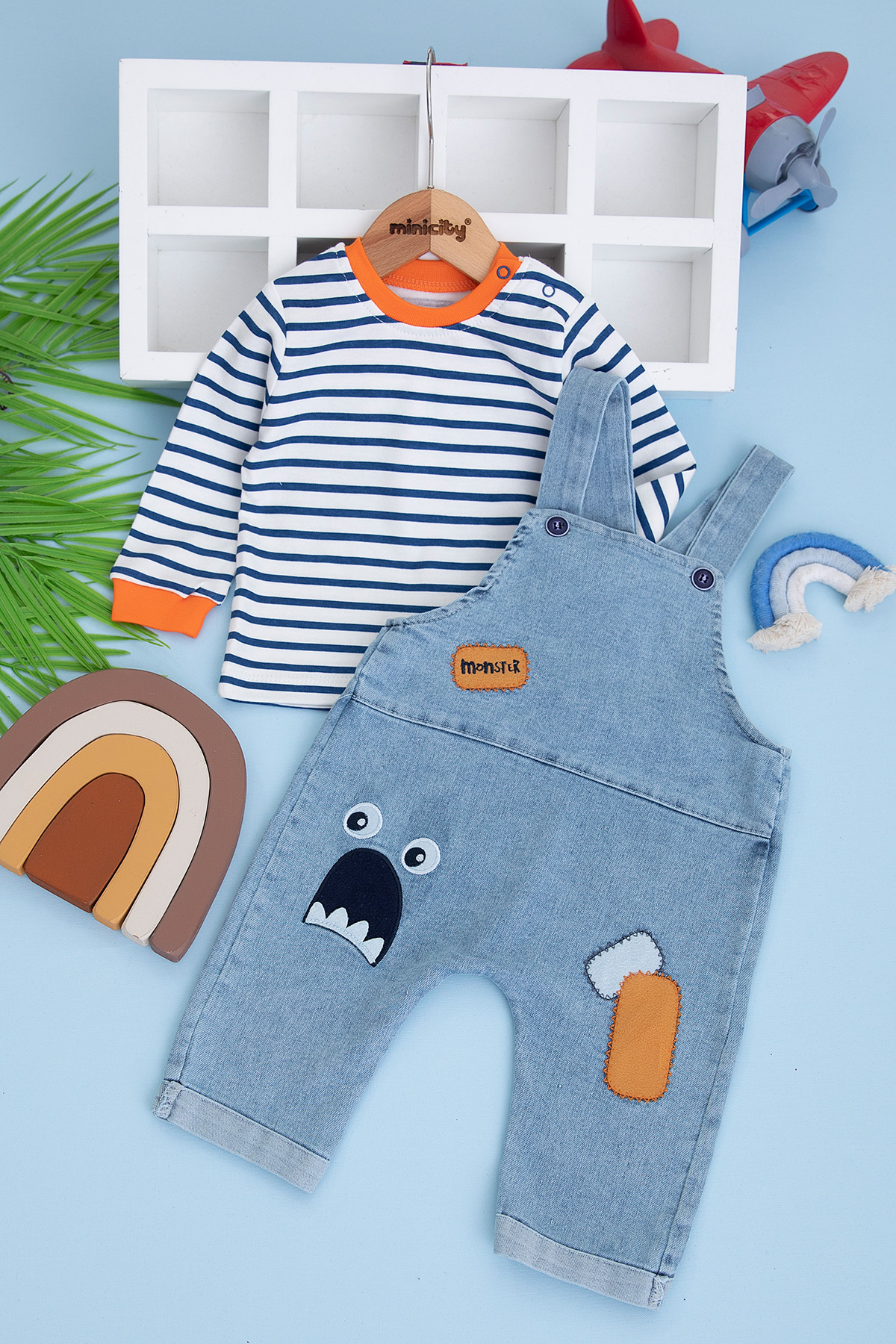 Erkek Bebek Monster Kot Salopetli Takım - 231081 (6-24 Ay)