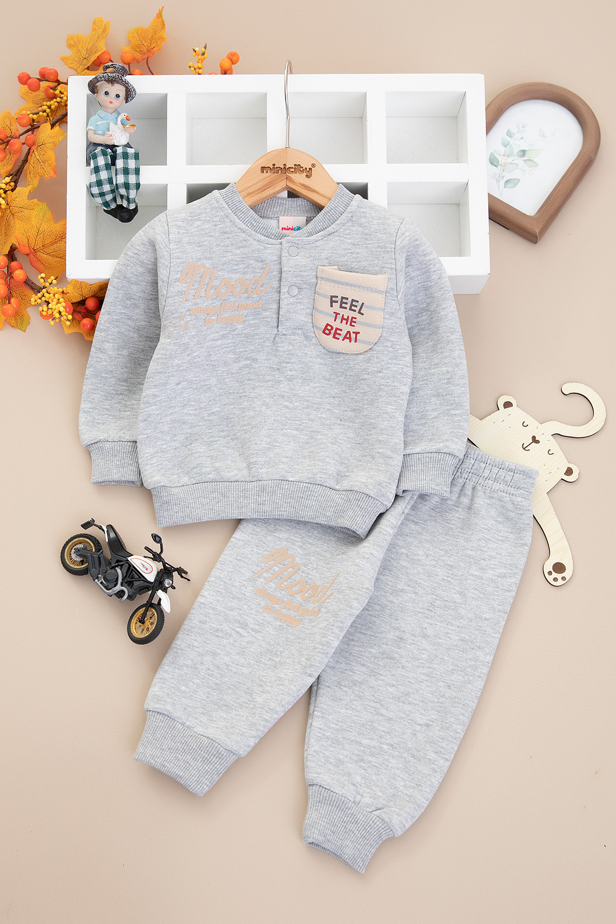 Erkek Bebek Mood Baskılı Üçip Takım - 25820 (9-24 Ay)