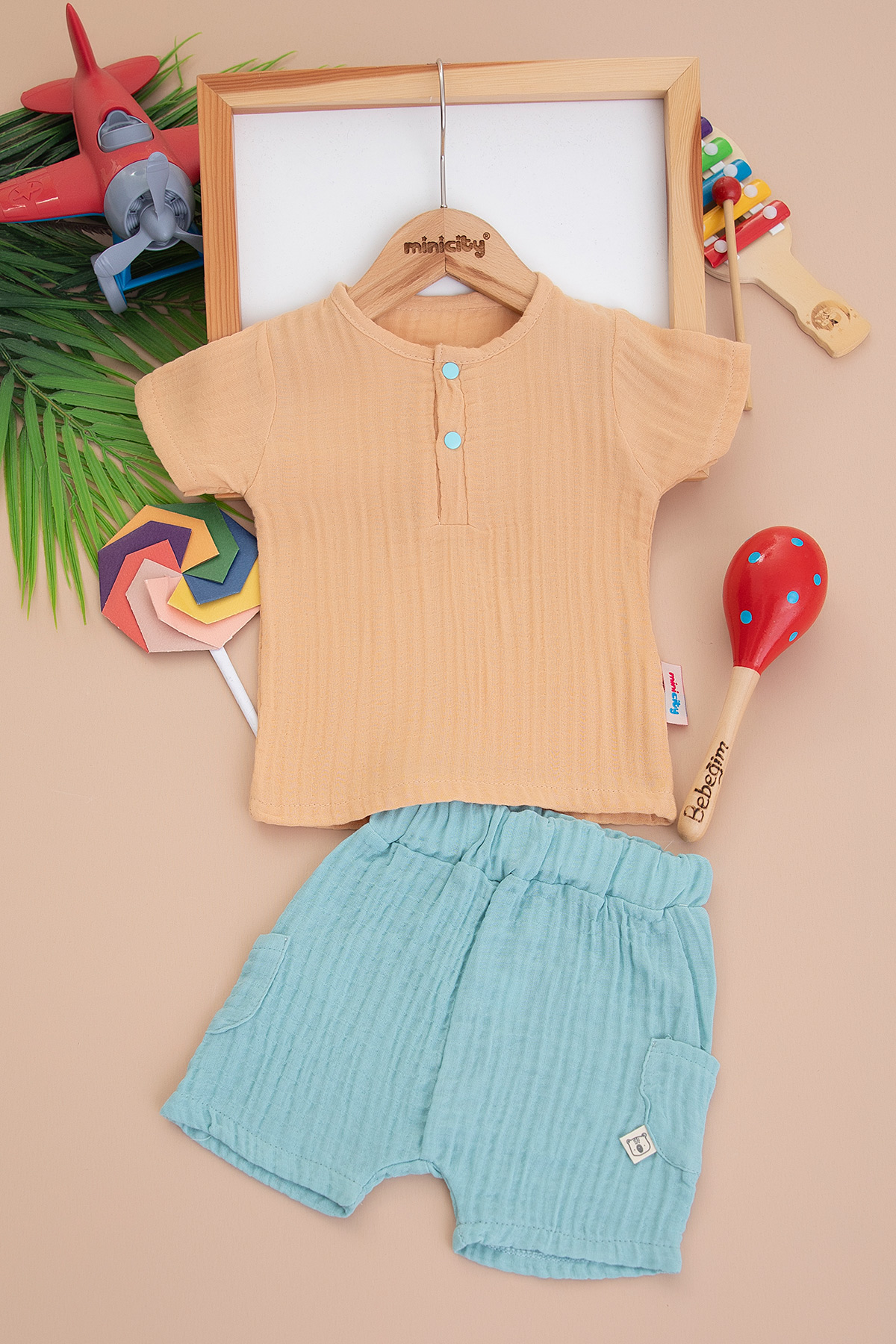 Erkek Bebek Müslin Şalvar Şort Takım - 2048 (6-24 Ay)