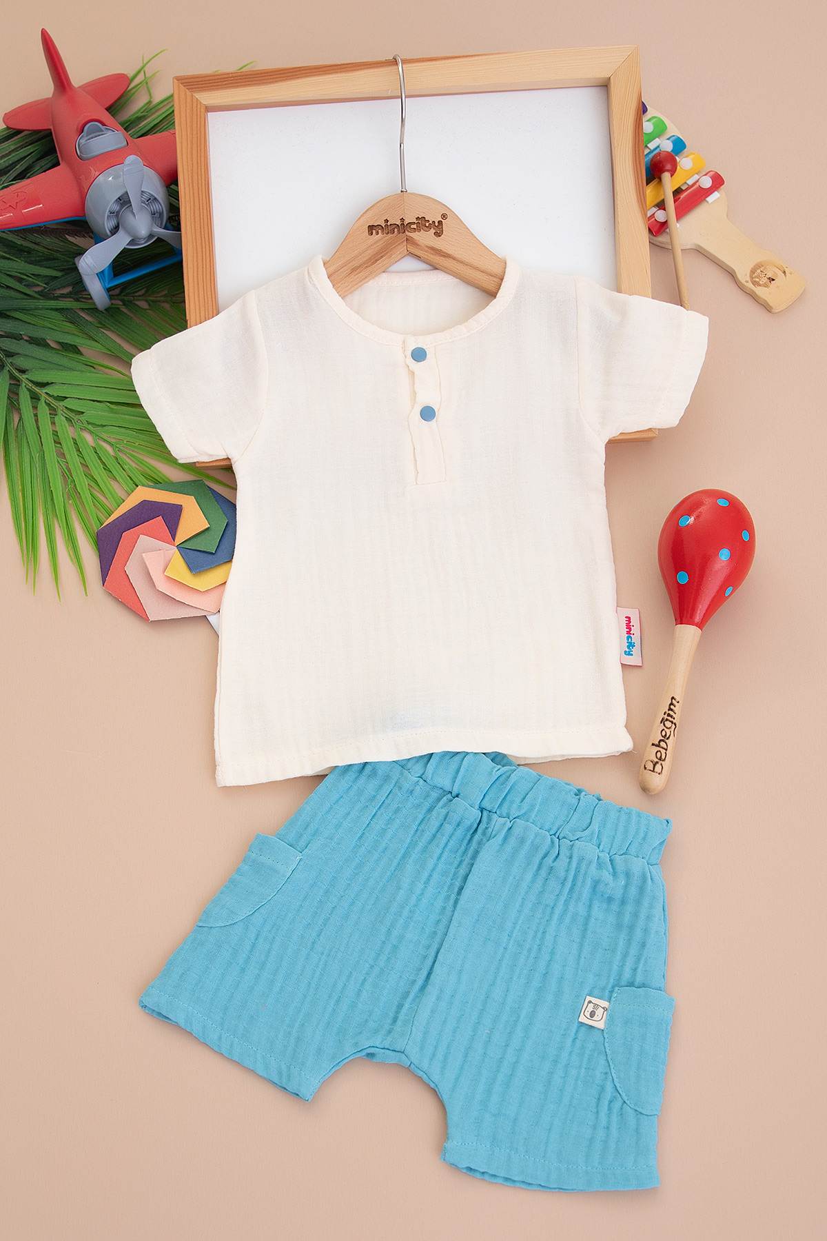 Erkek Bebek Müslin Şalvar Şort Takım - 2048 (6-24 Ay)