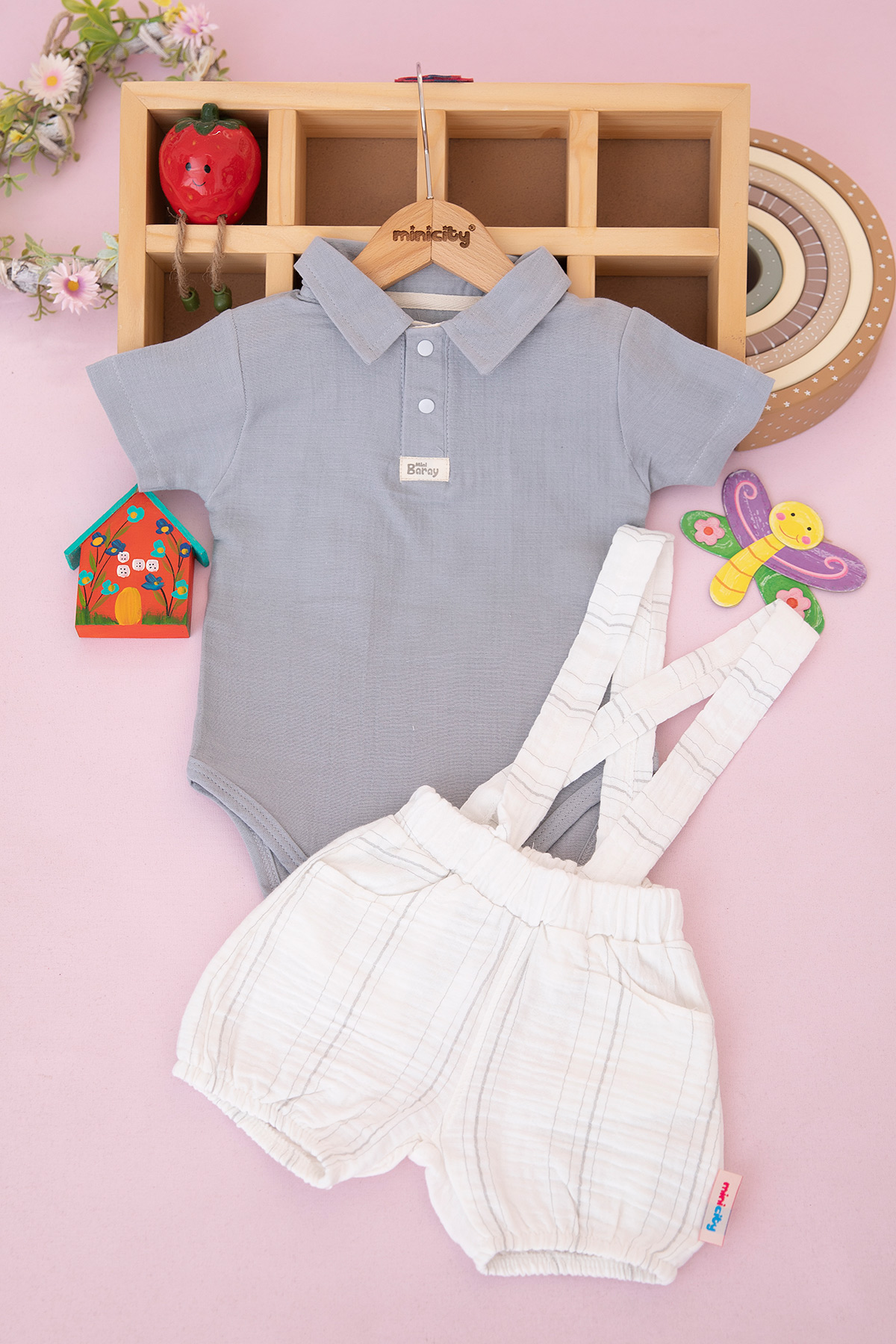Erkek Bebek Müslin Zıbınlı Şort Salopet - 1079 (9-24 Ay)