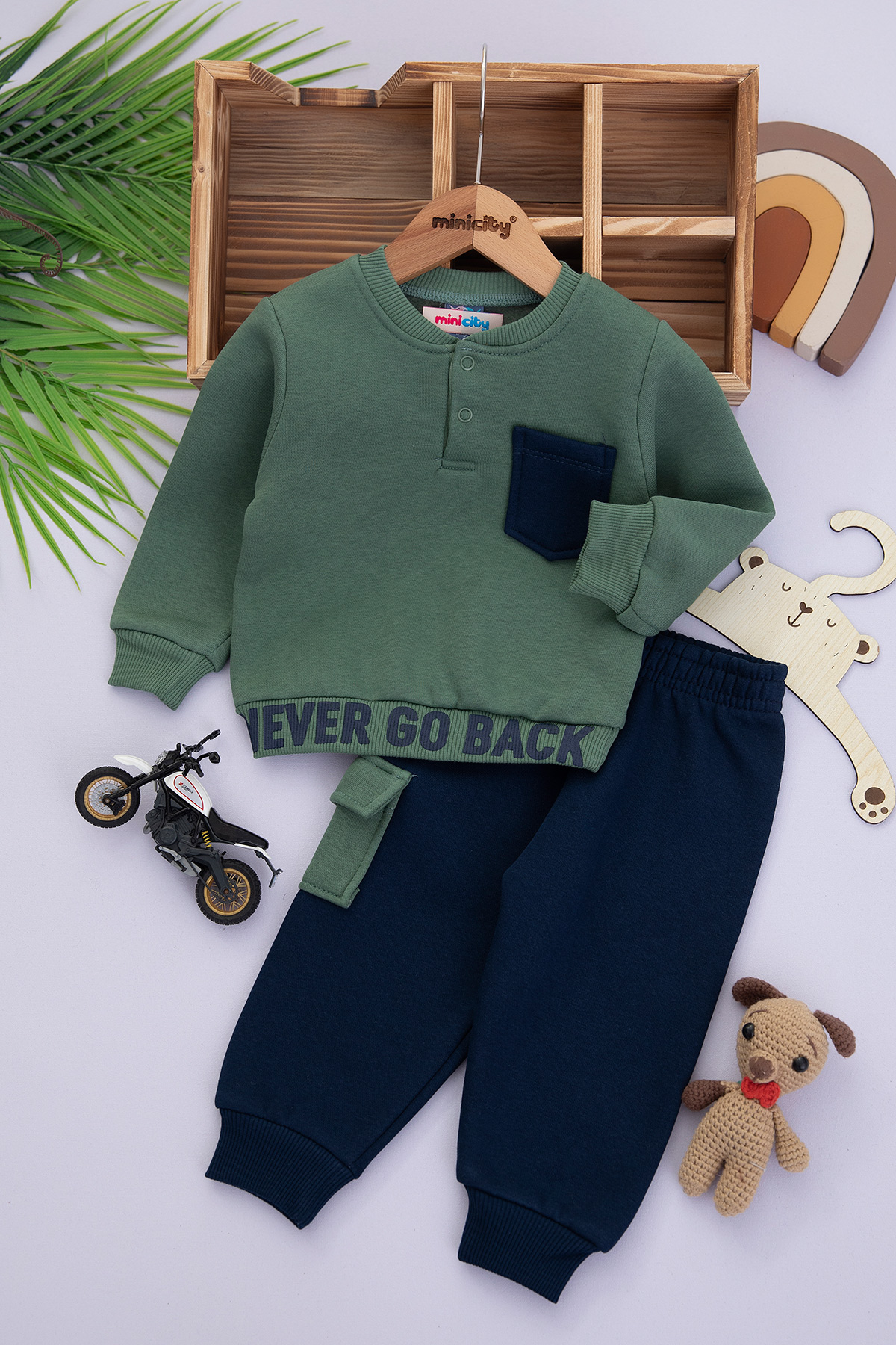 Erkek Bebek Never Go Baskılı Üç İp Takım - 24832 (9-24 Ay)